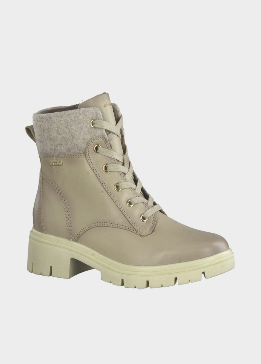 This is a Fashionable versatile Ankle boot from Tamaris with handstitched Leather upper, with a removable insole the flexible sole relieves the foot with every step. These Ankle boots in Brown impress with their design and are super comfortable to wear. The DuoTex material keeps feet warm and dry, and helps keep water out and absorbs moisture inside.