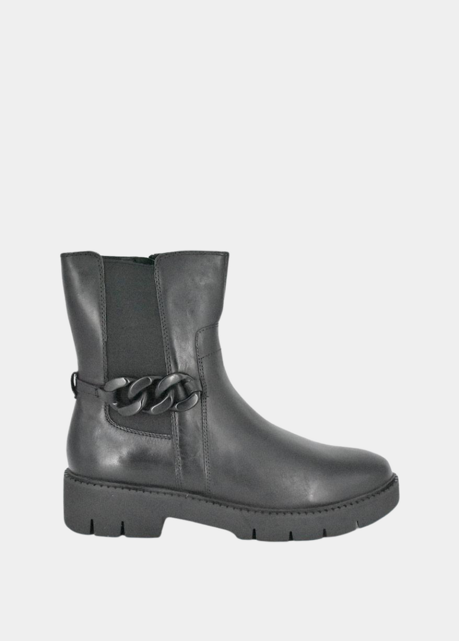 These are a gorgeous style from Remonte and will look great with any outfit. Finished in a classic black leather upper with chain detail and sitting atop a chunky black sole. Featuring elasticated side gussets and in classic chelsea style is complete with a handy pull tab to make the boot easier to get on and off.