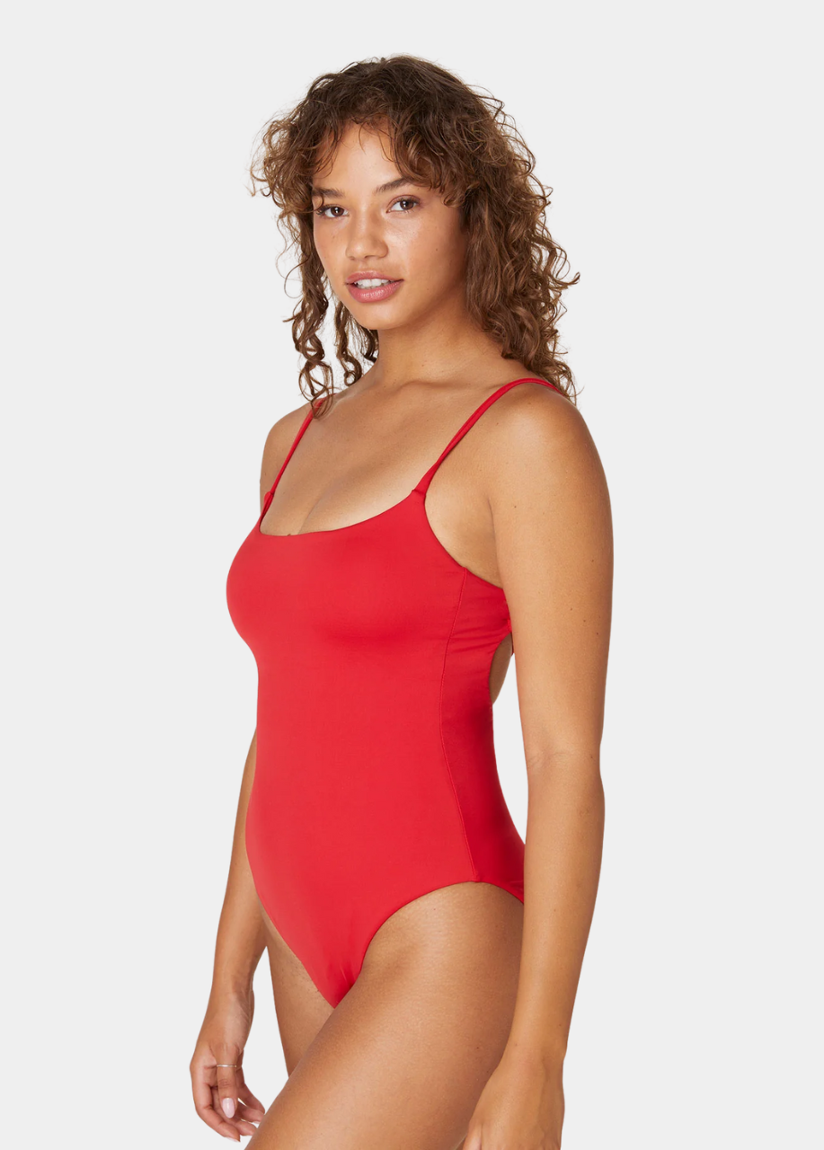 This is a really great basic swimsuit with a great leg cut! It's fully lined too! I'm 5'10" and needed a long torso suit and this really fit great. The fabric has a lot of give which is nice. I'm glad I got a small. I have a smaller chest so this was good. I don't think it would be very supportive for larger breasts. I'm about 150lbs but lean athletic build. Love the red! Shoutout to customer service too! They are stellar!