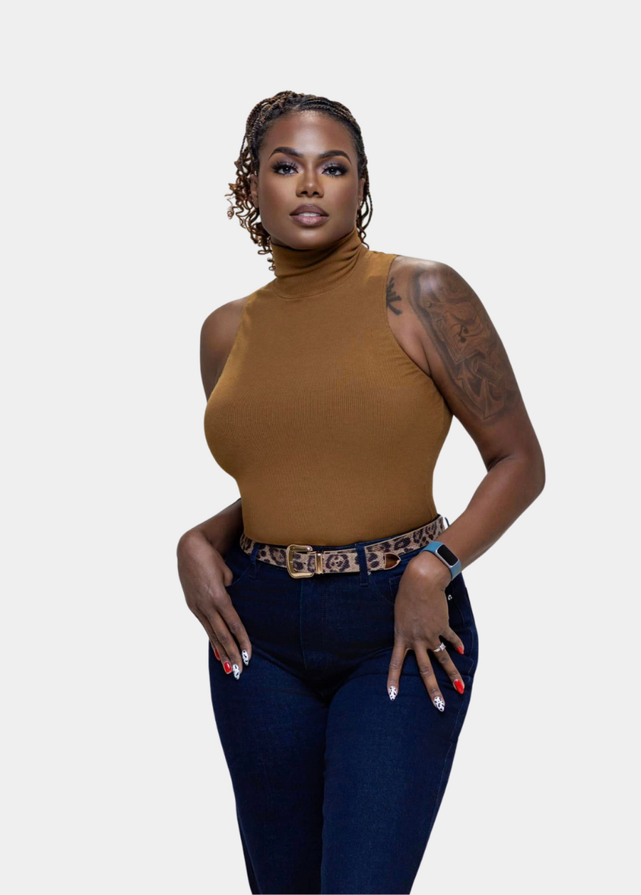 Designed with the tall woman in mind, this sleek, high-neck brown bodysuit offers the perfect blend of style and comfort. Crafted with a longer torso to ensure the ideal fit, it hugs your curves while providing ample length for taller frames. The soft, stretchy fabric contours the body, making it the ultimate versatile piece for layering or wearing solo. With its minimalist design and sleeveless cut, this bodysuit is an essential staple, perfect for dressing up or down. No more tugging or uncomfortable fit—just effortless style for tall women who want to look and feel their best.