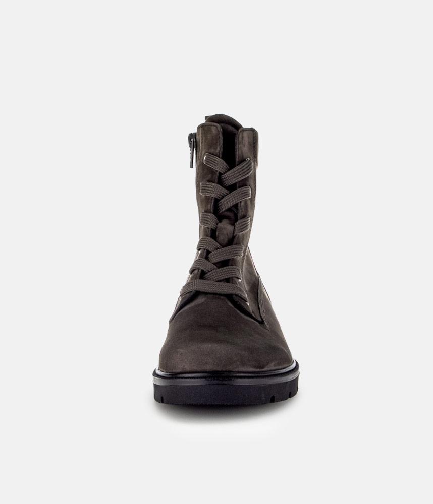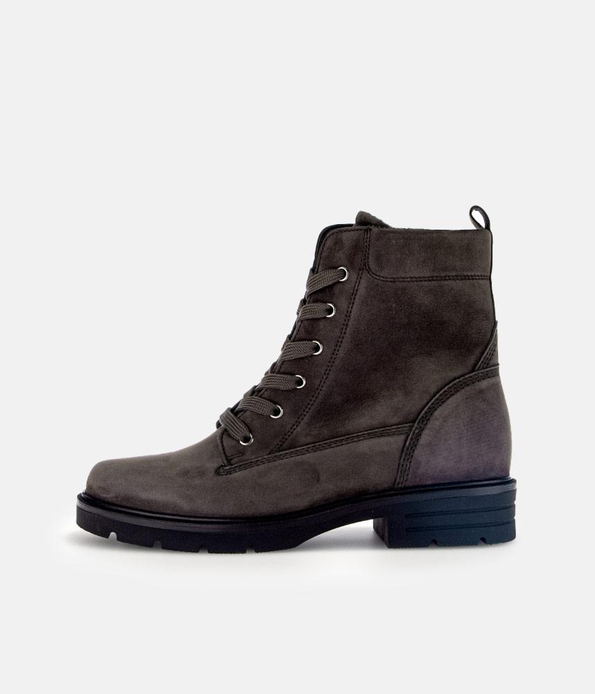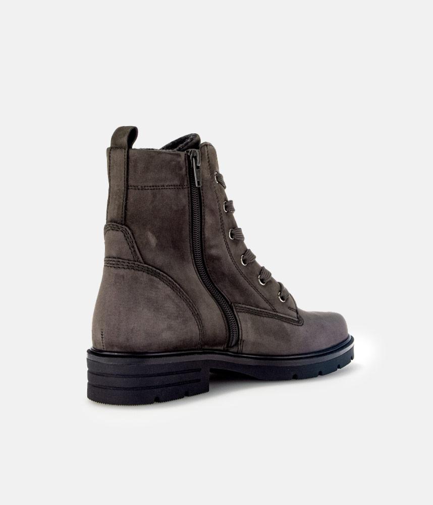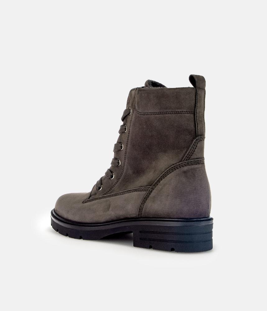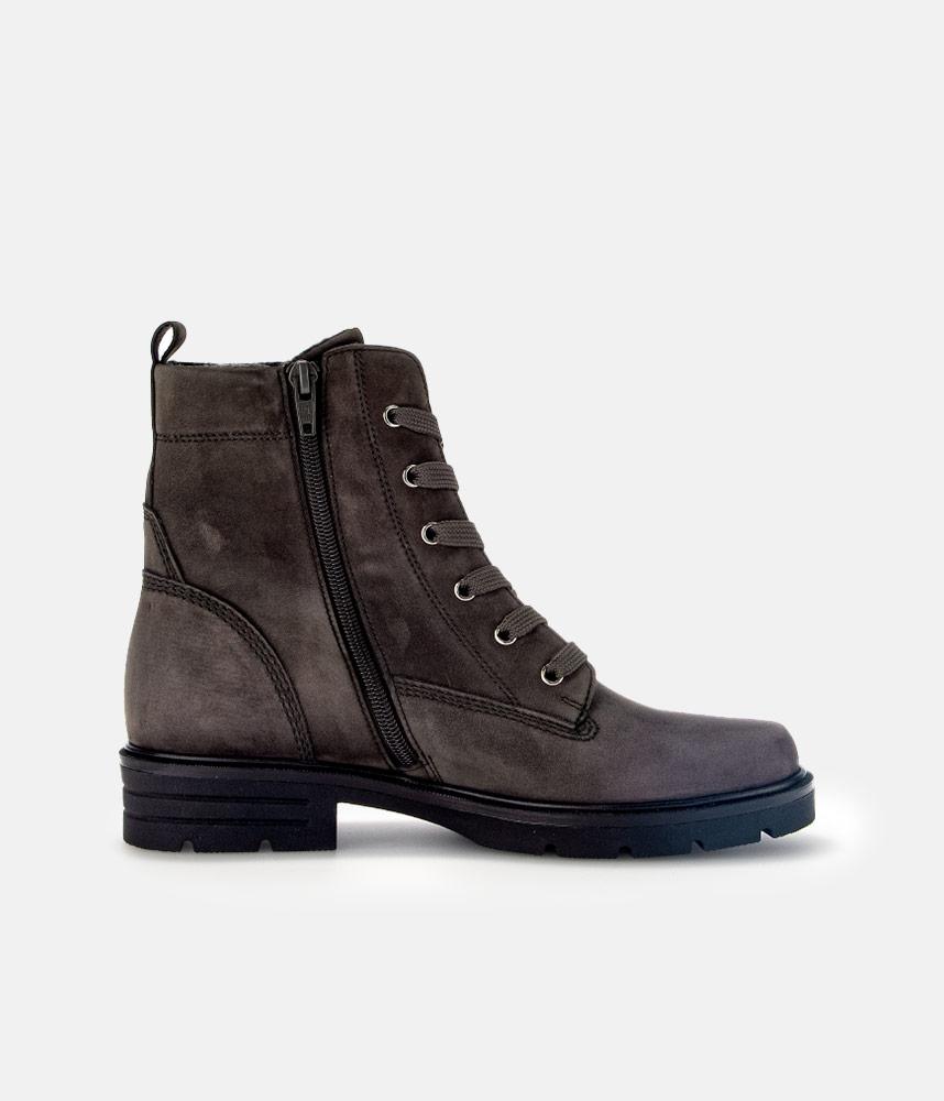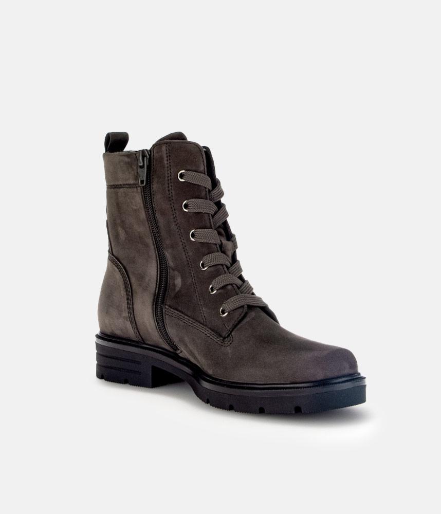 These Gabor Lace Up Ankle Boots are a fashionable style, yet practical for everyday wear. A soft pepper grey leather upper sits on a chunky trendy black sole. The side zip and laces makes this style easy to put on and take off while also allowing for an adjustabe fit. Gabor's Best Fitting technology feature a broadened insole and widened tread area, delivering an increased step surface for the ball area of the foot.