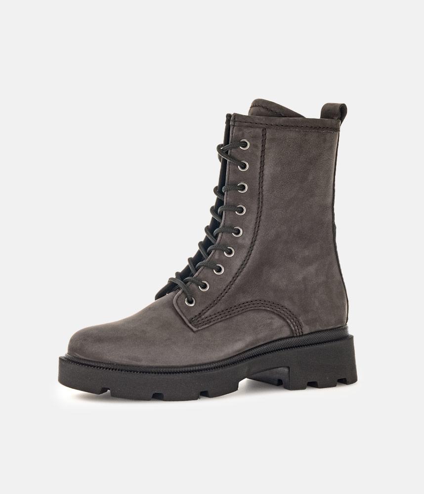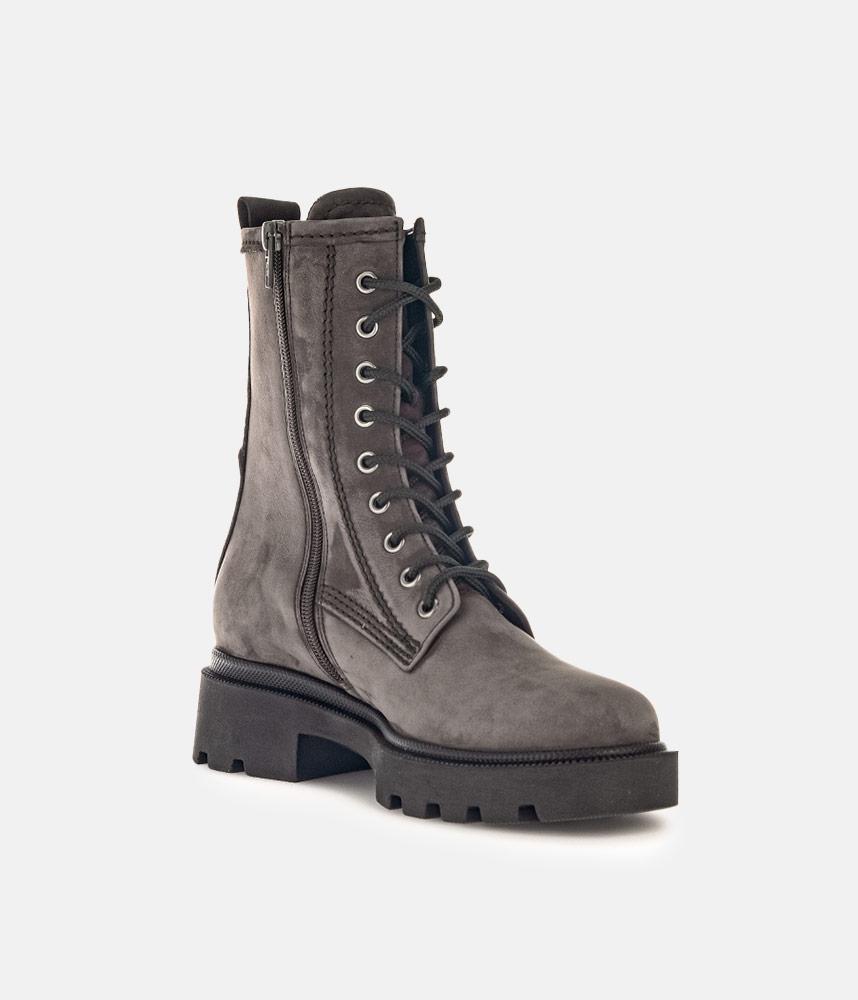 The Style from Gabor in Grey is a wardrobe Must Have this season. The upper consists of High quality soft Grey Nubuck and the full-length zip on the inner allows for easy on off while the laces allow for an adjustable fit. Part of Gabor’s Best Fit range this boot offers a wider stepping surface in the ball area of your foot for your comfort as you walk. A removable insole makes these boots ideal for those who require custom insoles.