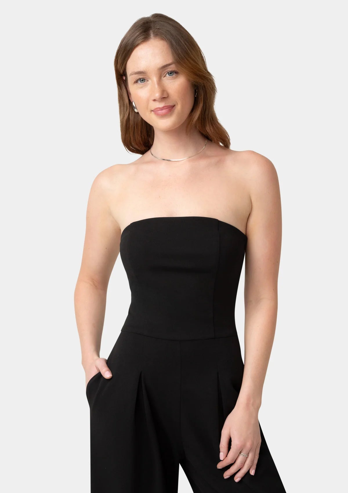Designed for tall, this strapless wide‑leg jumpsuit features a flawless 37" inseam that delivers an elegant, elongated silhouette. Its structured bodice, soft drape, and refined pleating create a modern, polished look perfect for any elevated occasion.