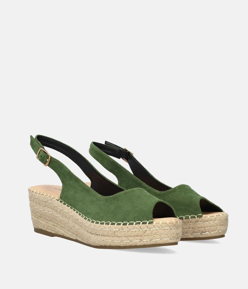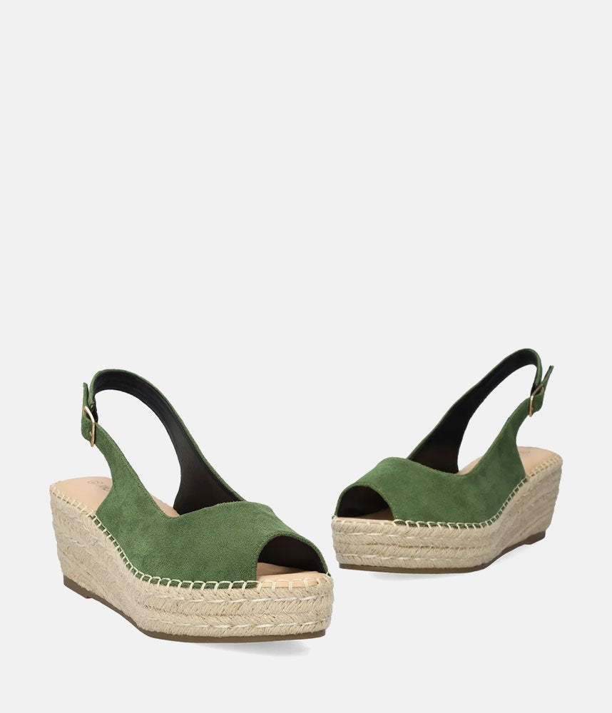 Transport your wardrobe to the seaside with these gorgeous green suede espadrilles! Featuring a rich kelly green upper and a classic braided jute wedge, these slingback sandals are the ultimate summer statement. The peep-toe design and hand-stitched detailing give them a luxurious, handcrafted look. Perfect for pairing with white linen dresses, floral maxis, and your favorite sun hat!