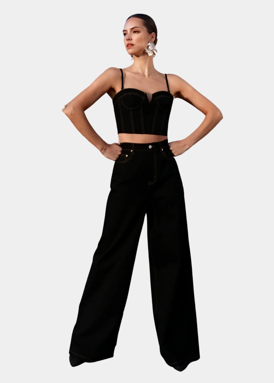Malia Wide Leg Denim Jeans - Black