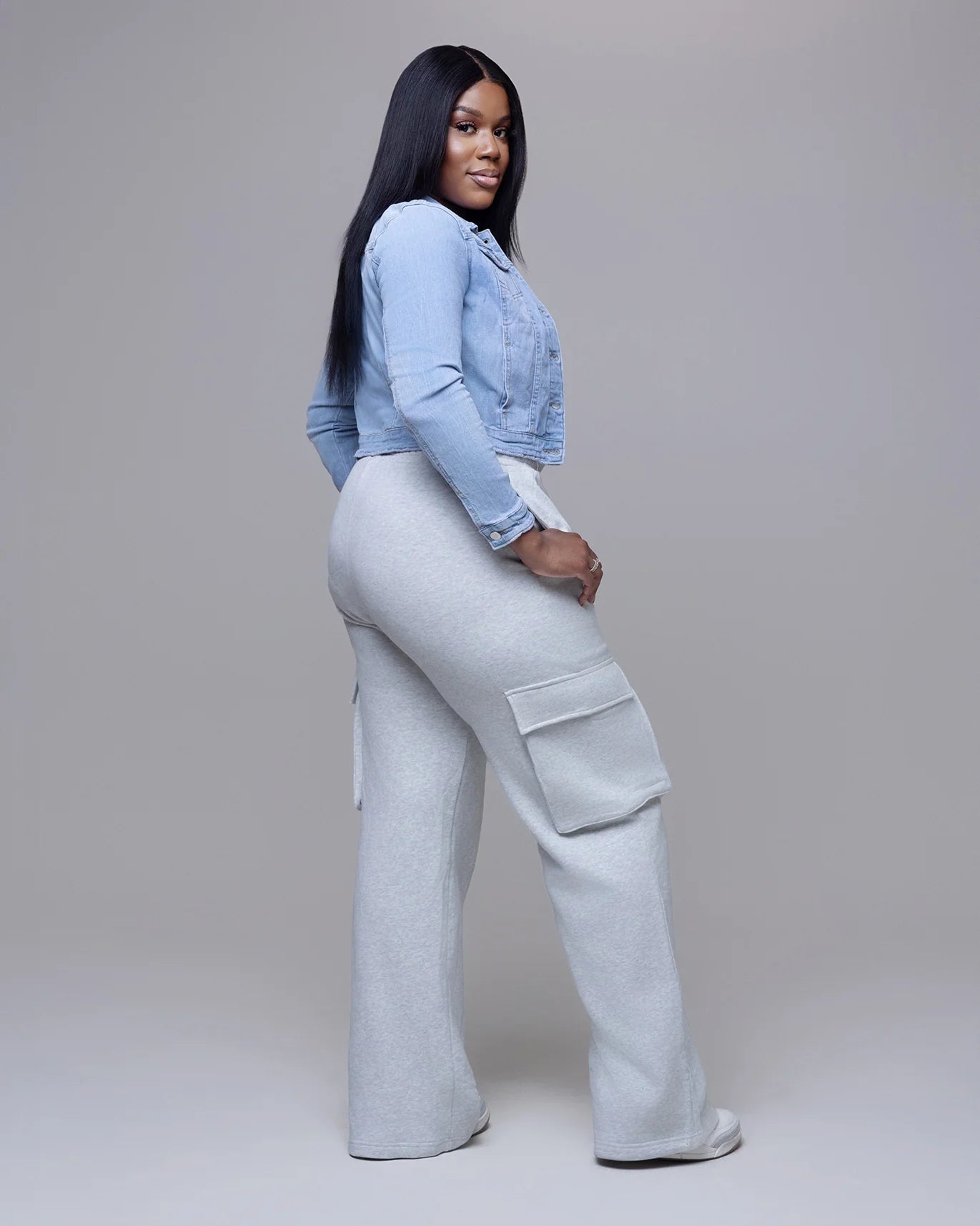 Designed for the tall woman who values both comfort and style, these grey wide-leg cargo sweatpants are the ultimate everyday essential.