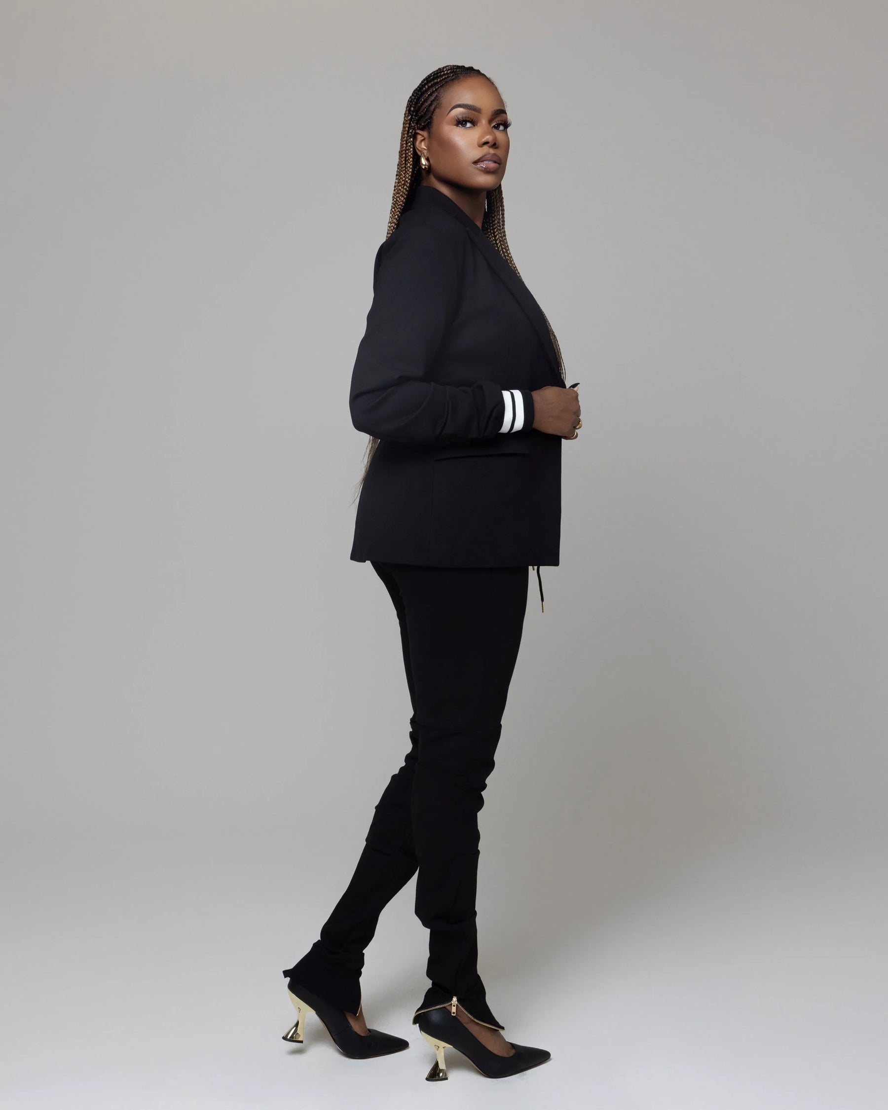 Elevate your ensemble with our sophisticated Jogger Suit Jacket, tailored exclusively for tall women who demand both style and functionality.