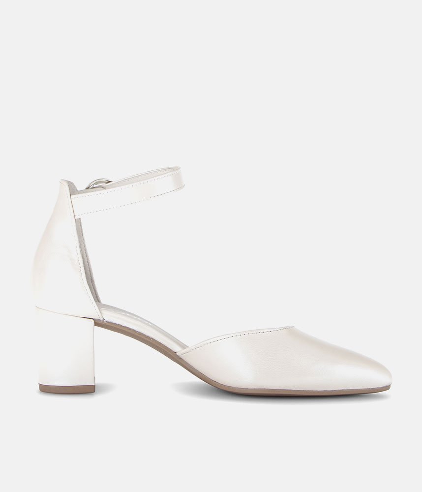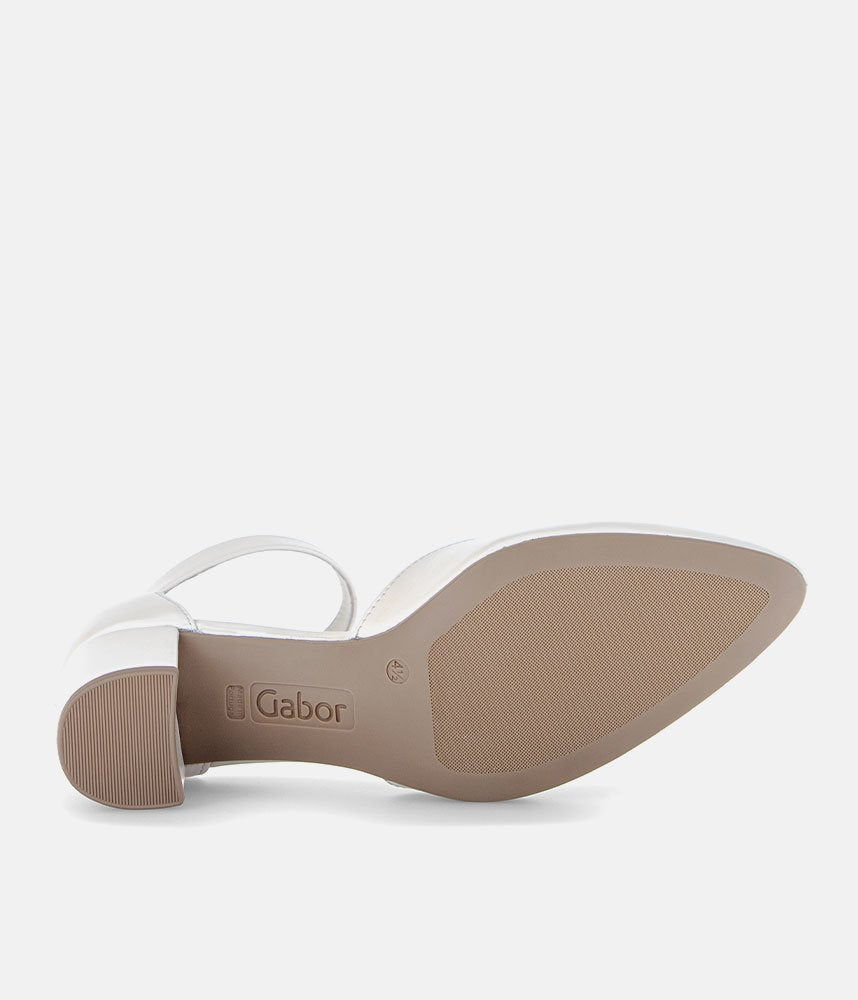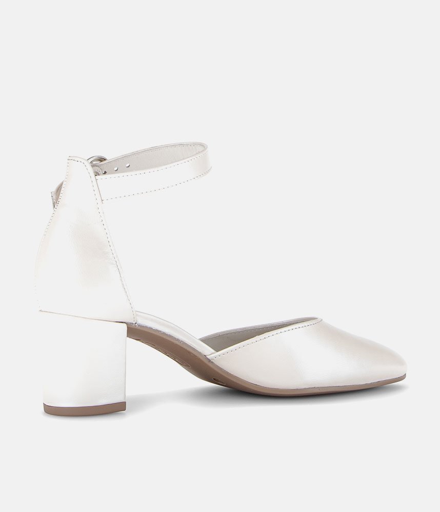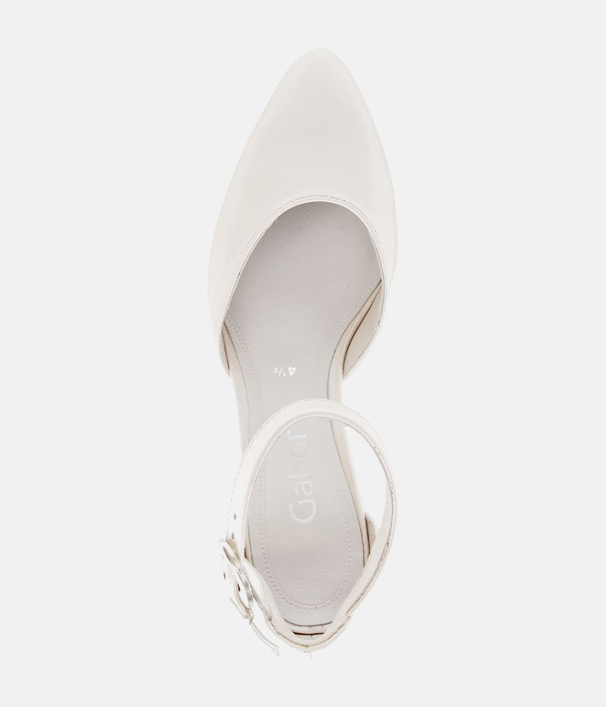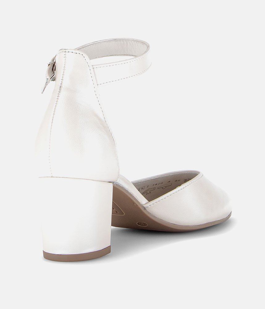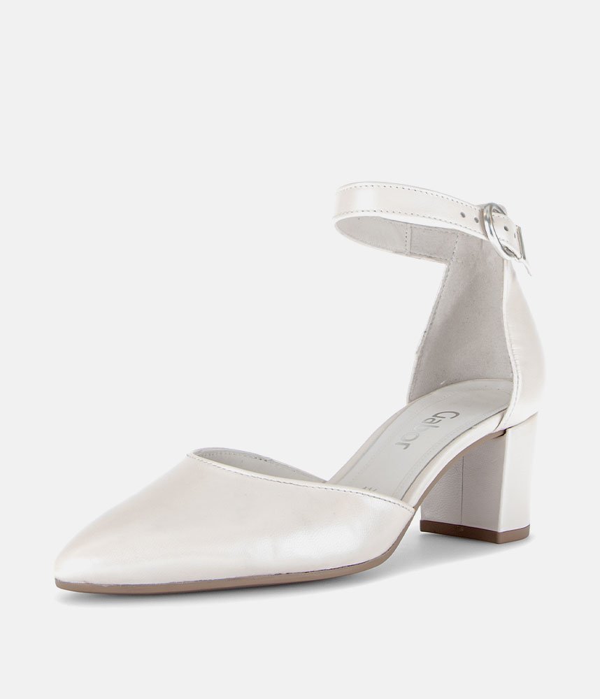 This style from Gabor is perfect for special occasions with it's block heel and Pearl White upper with a subtle shimmer. The covered heel back and adjustable ankle strap and buckle ensure a secure fit.