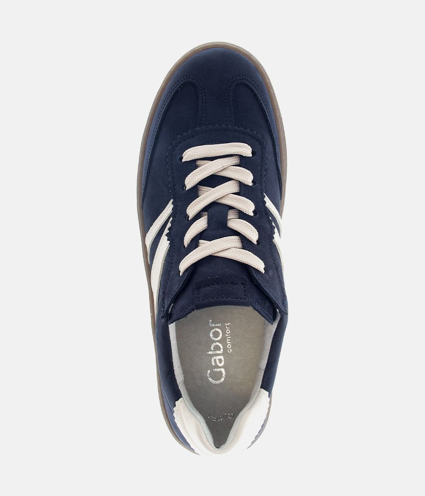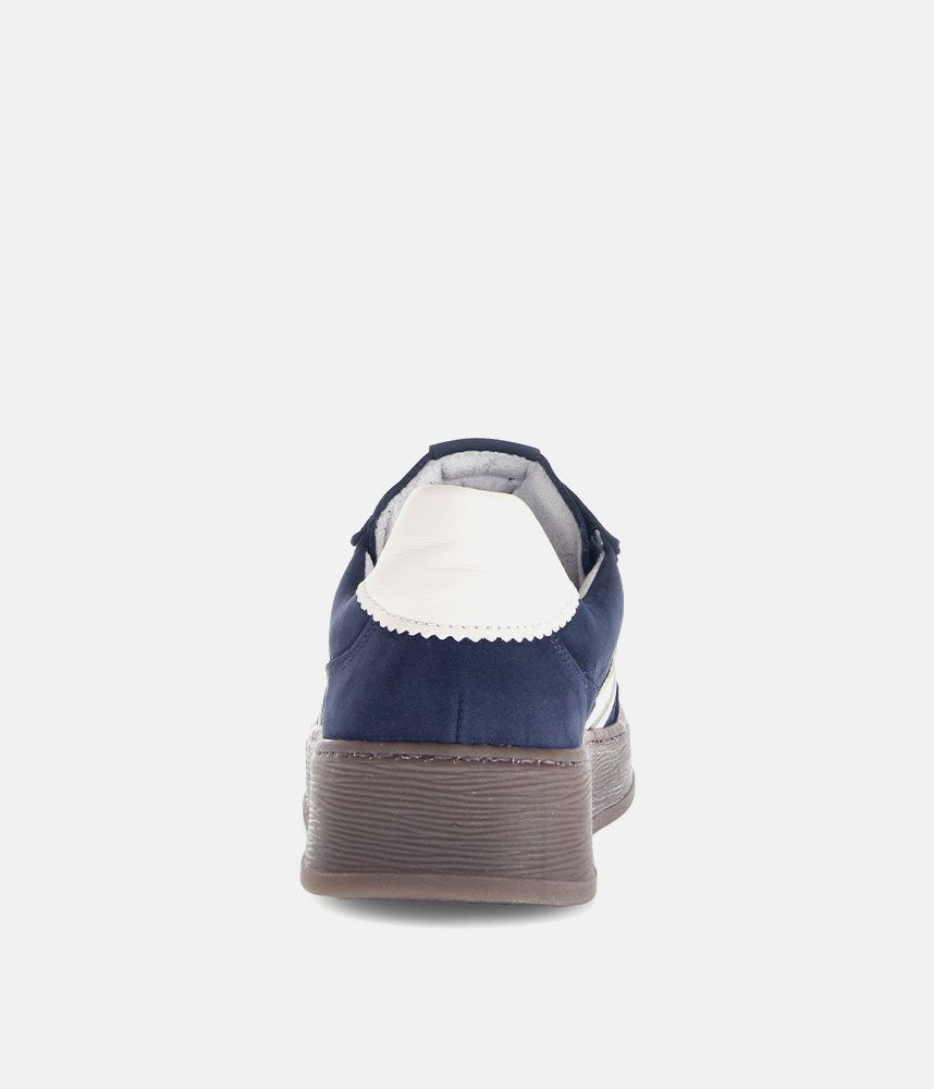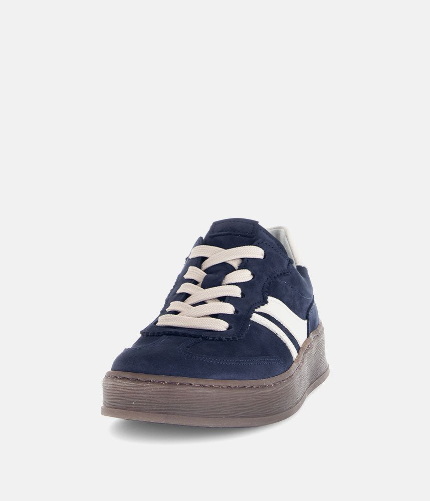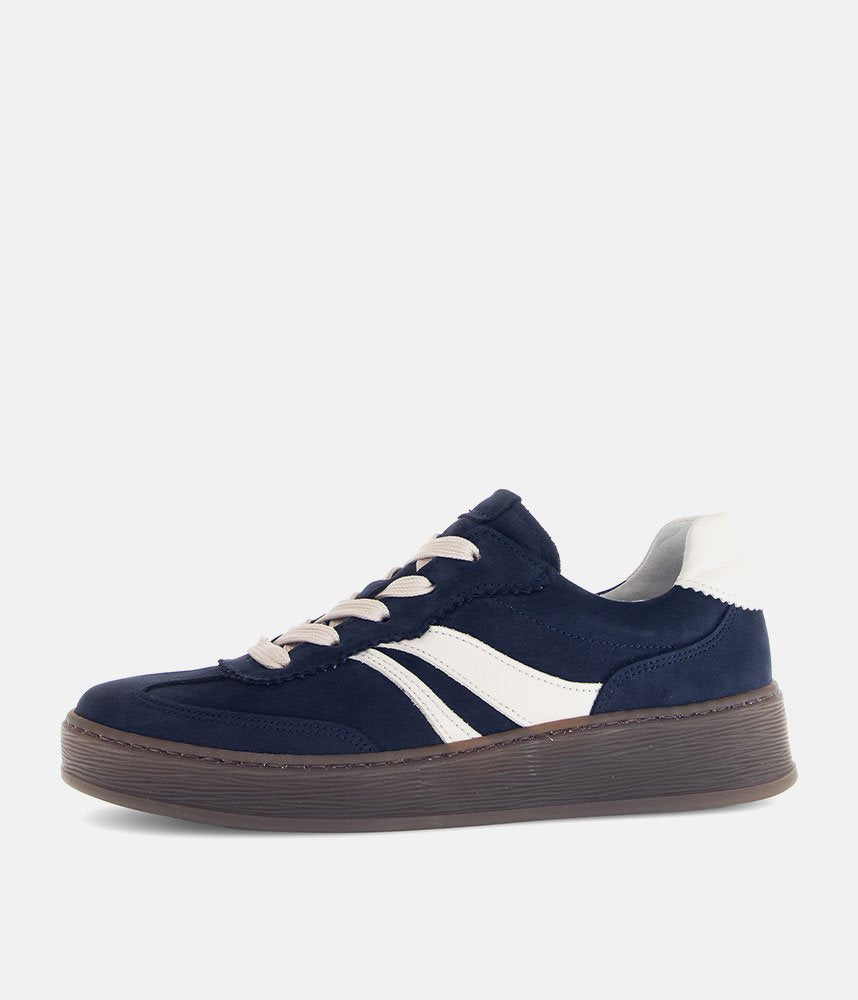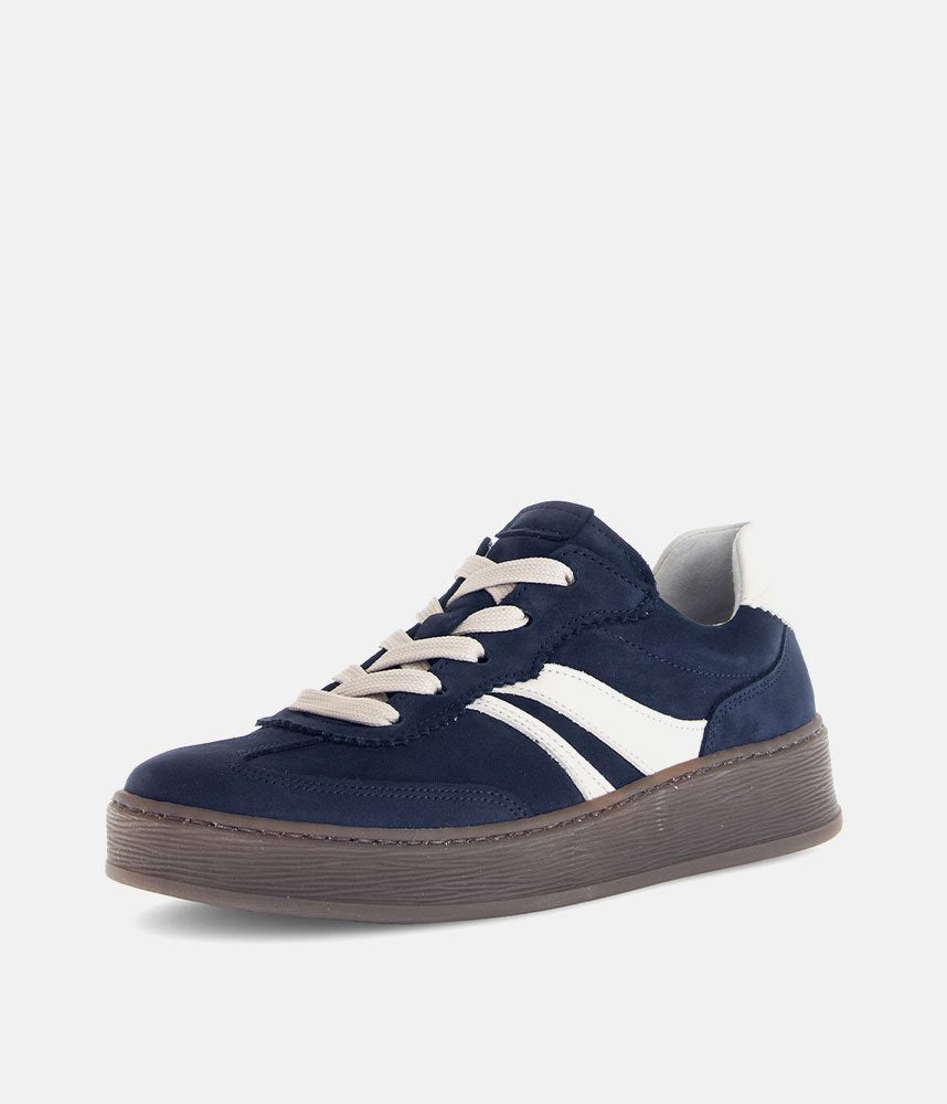 Combine classic style and modern comfort with these versatile sneakers. The deep navy upper is accented with crisp white stripes for a timeless, sporty look. What truly sets them apart is the chunky platform sole, which not only adds a fashionable edge but also provides a cushioned, supportive feel for all-day wear. Whether you're running errands or meeting friends, these shoes will keep you comfortable and looking great.