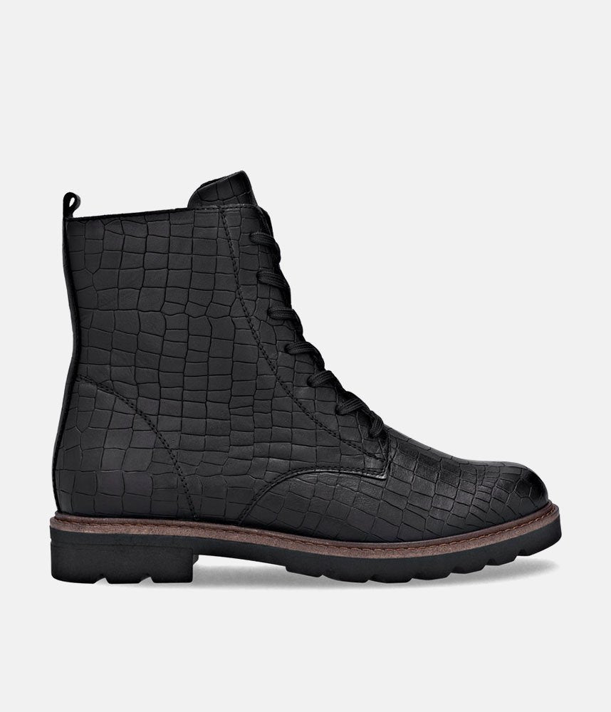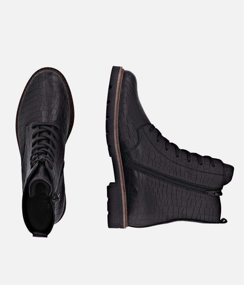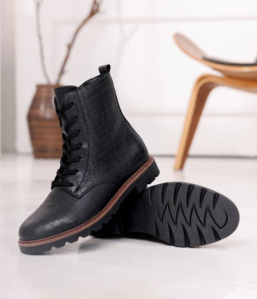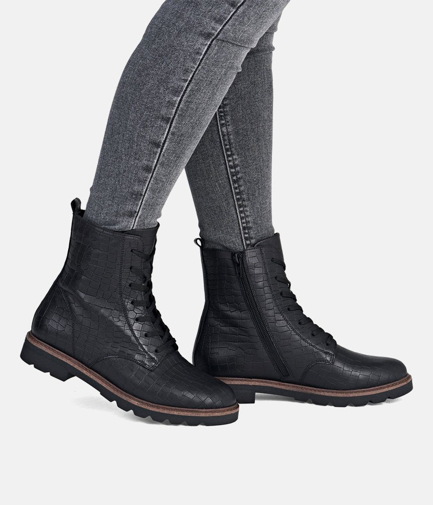 Remonte Styliss Croc Leather Ankle Boots - Black