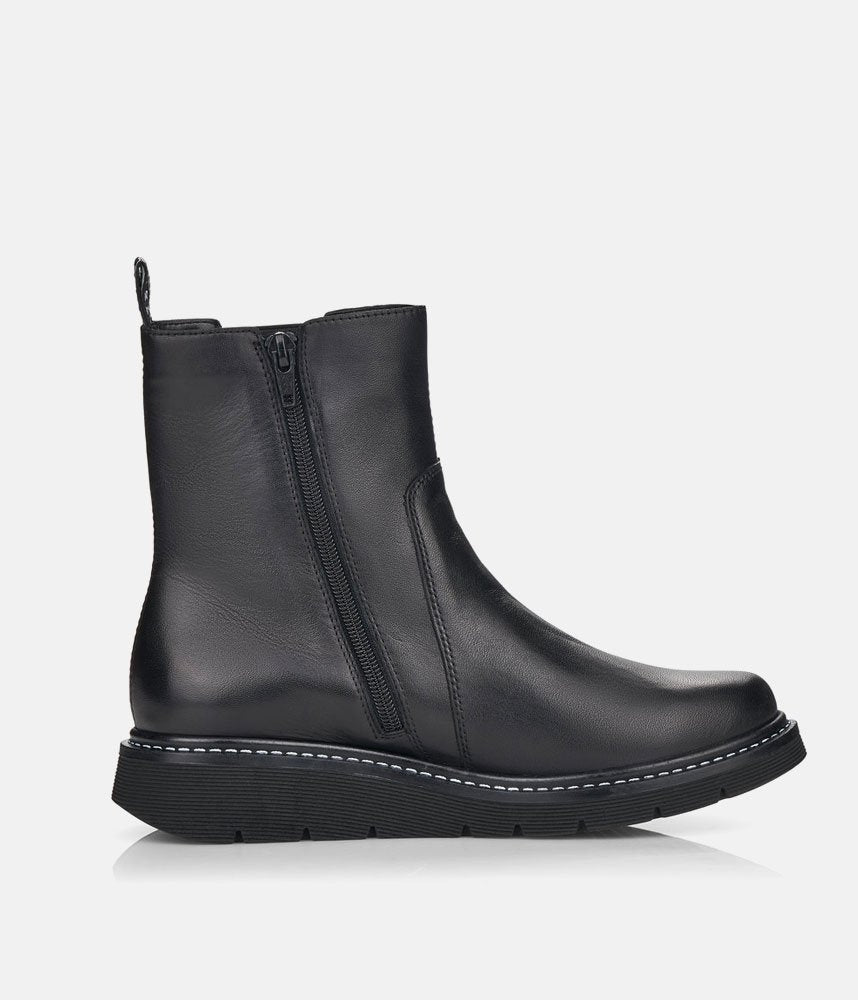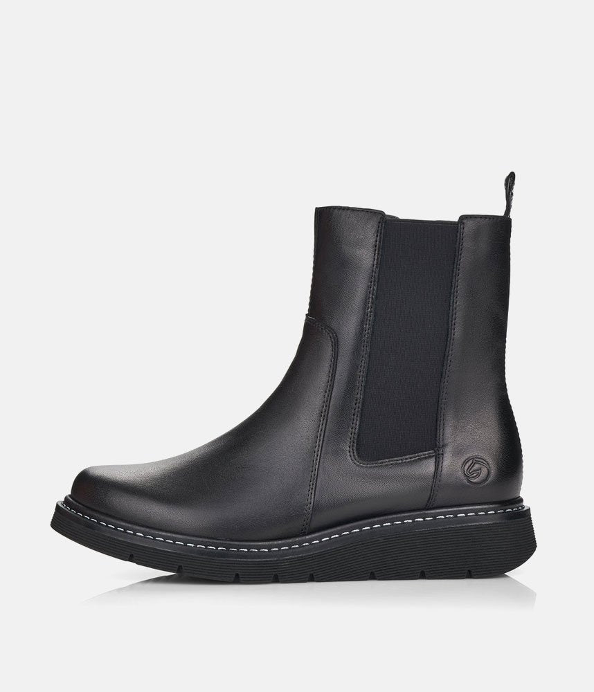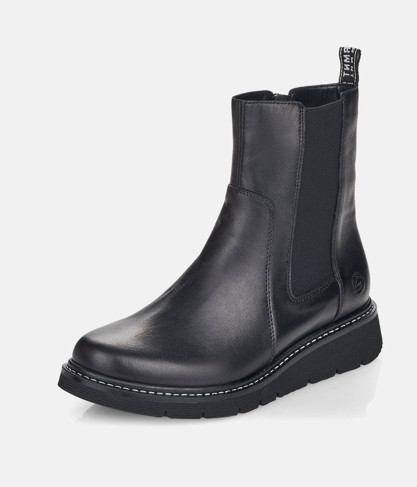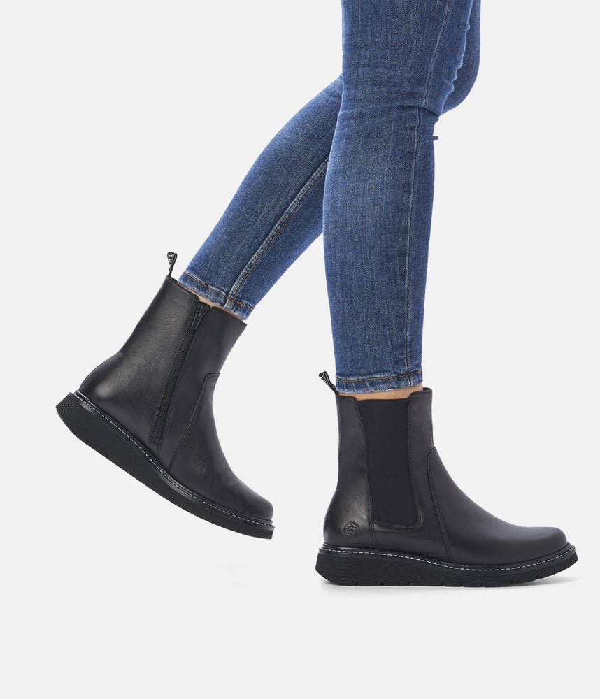 This Ankle Boot by Remonte is a modern variation of the classic Chelsea boot. Featuring a stretch insert on the outside, and a functional zipper on the inside. The flexible outsole is rubberized for grip with a modern wedge height of 4 cm.