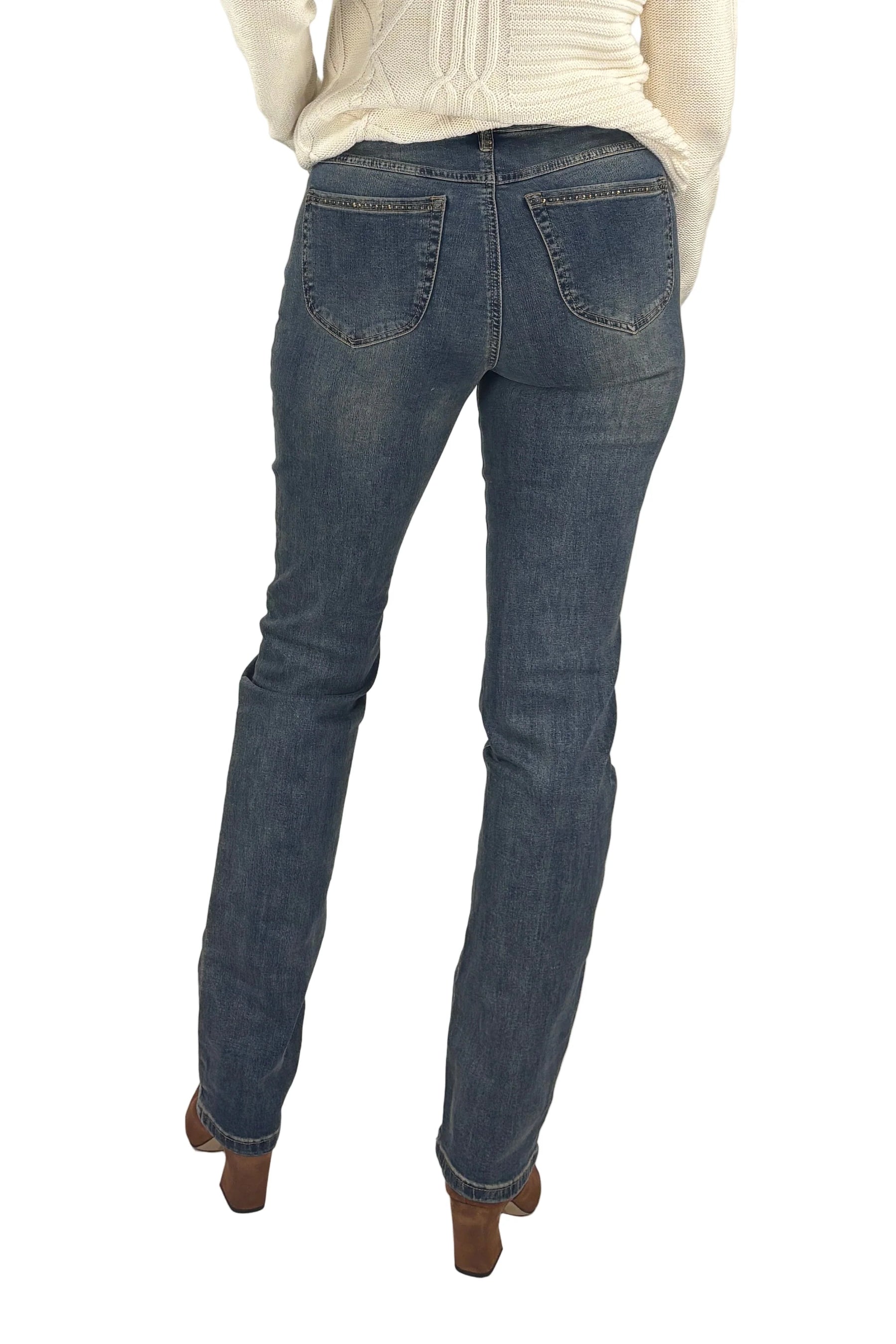 The sleek lines of a classic straight leg jean never goes out of style. Throw them on with your sneakers for a chic coffee run or play up the sassy vibe with heels for date night. The stud accents, classic lines, versatility will become a fast favorite.