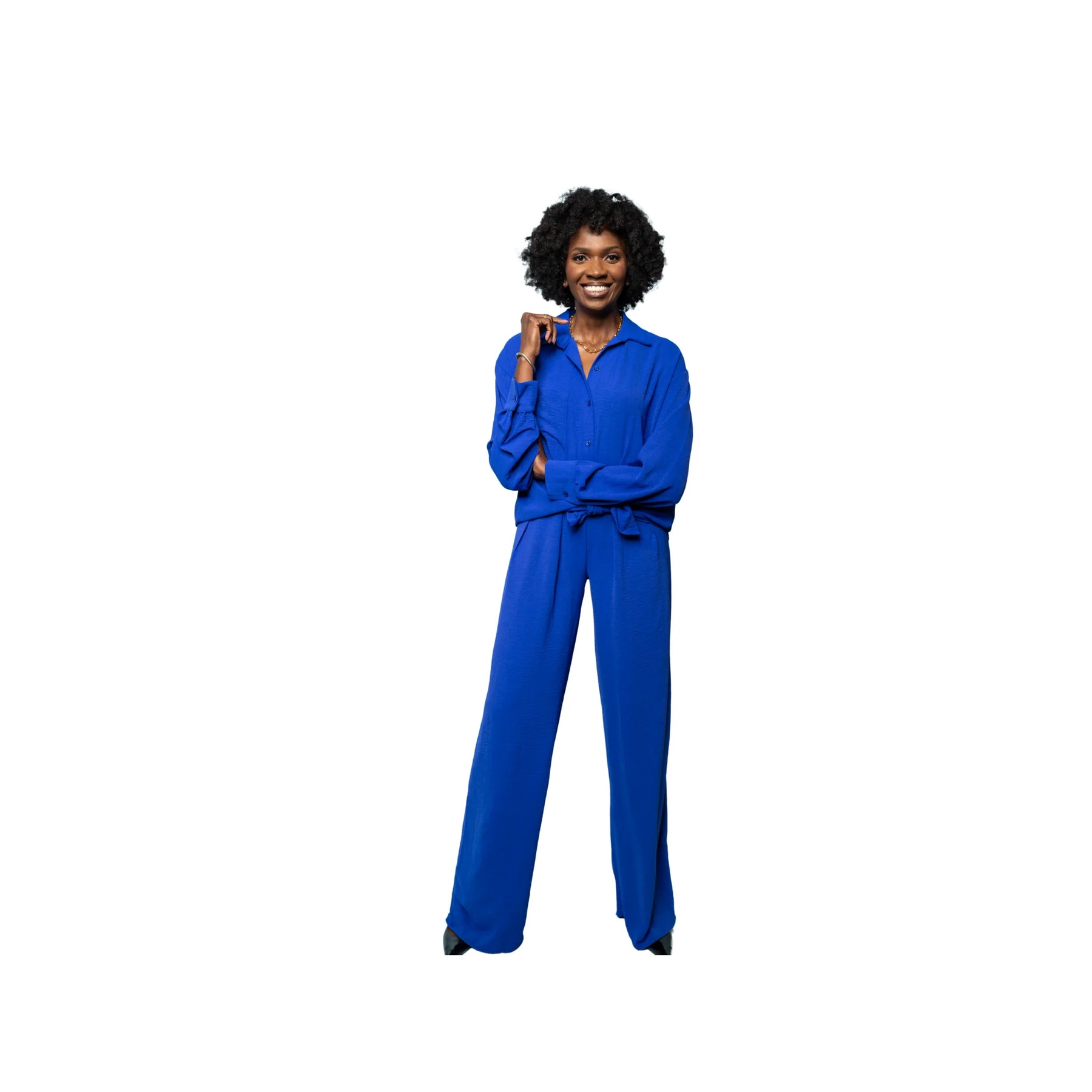 Make a statement with the Iris Set, part of TallFit’s Ready-to-Wear Collection. Available in vibrant blue or classic black, this two-piece set combines a wide-leg pant and an oversized blouse for a perfectly coordinated look. The pants feature a forgiving elastic waistband and a generous 38.5-inch inseam, offering a tailored fit for tall frames. The blouse, with its flowing silhouette and extra-long sleeves designed specifically for long arms, exudes elegance and versatility. Wear the set together for a chic ensemble or style the pieces separately for endless outfit options—all for one great price.