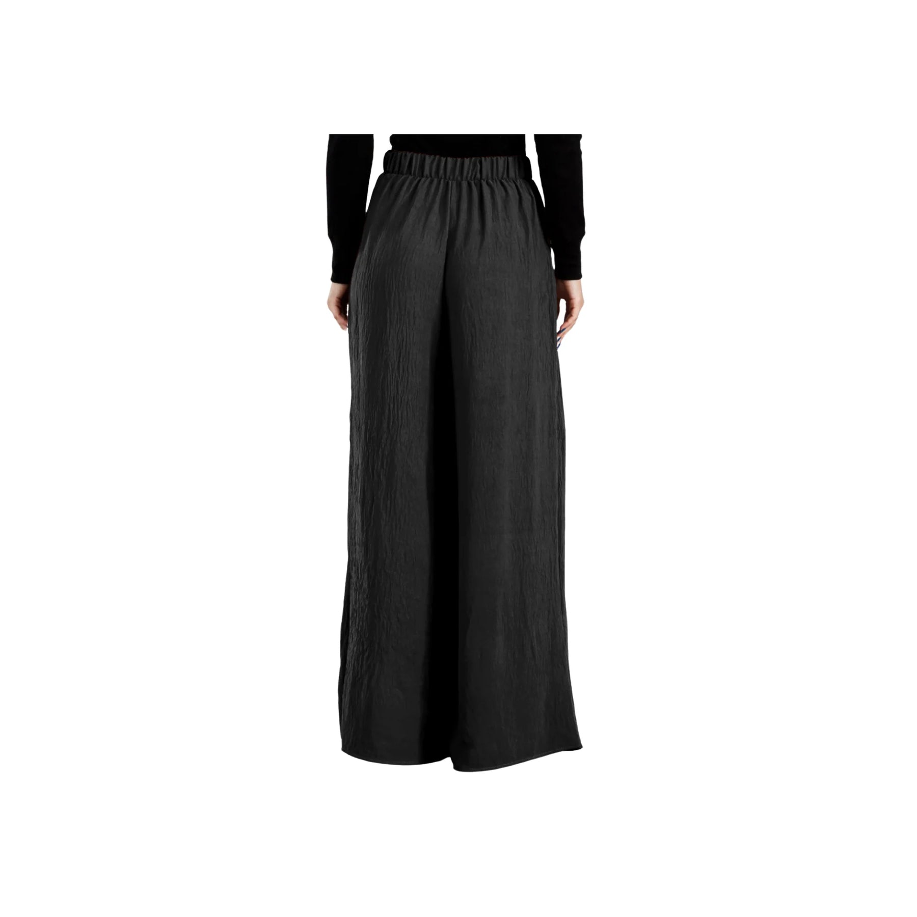 - Fit: Wide-leg pants with elastic waistband; oversized blouse with extra-long sleeves