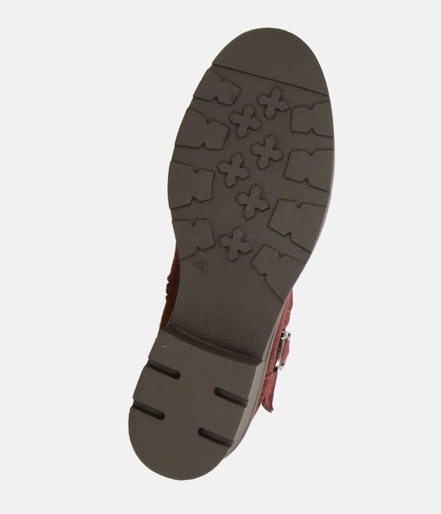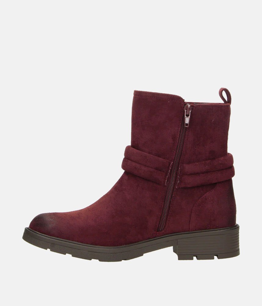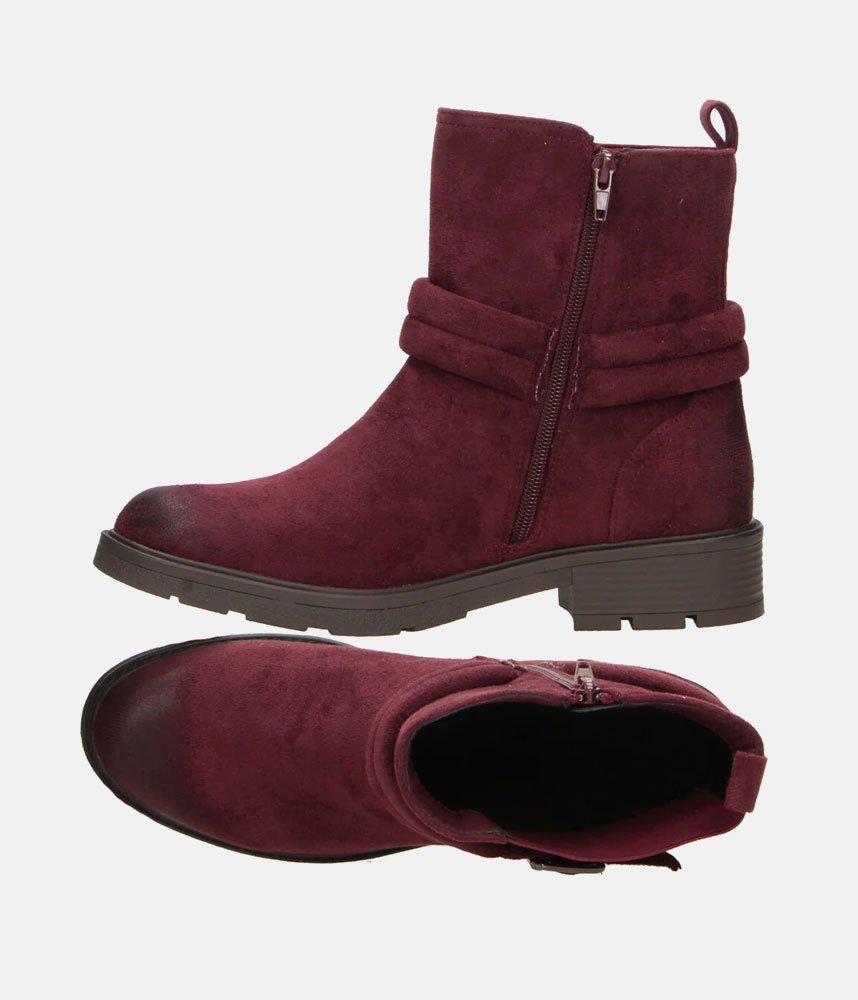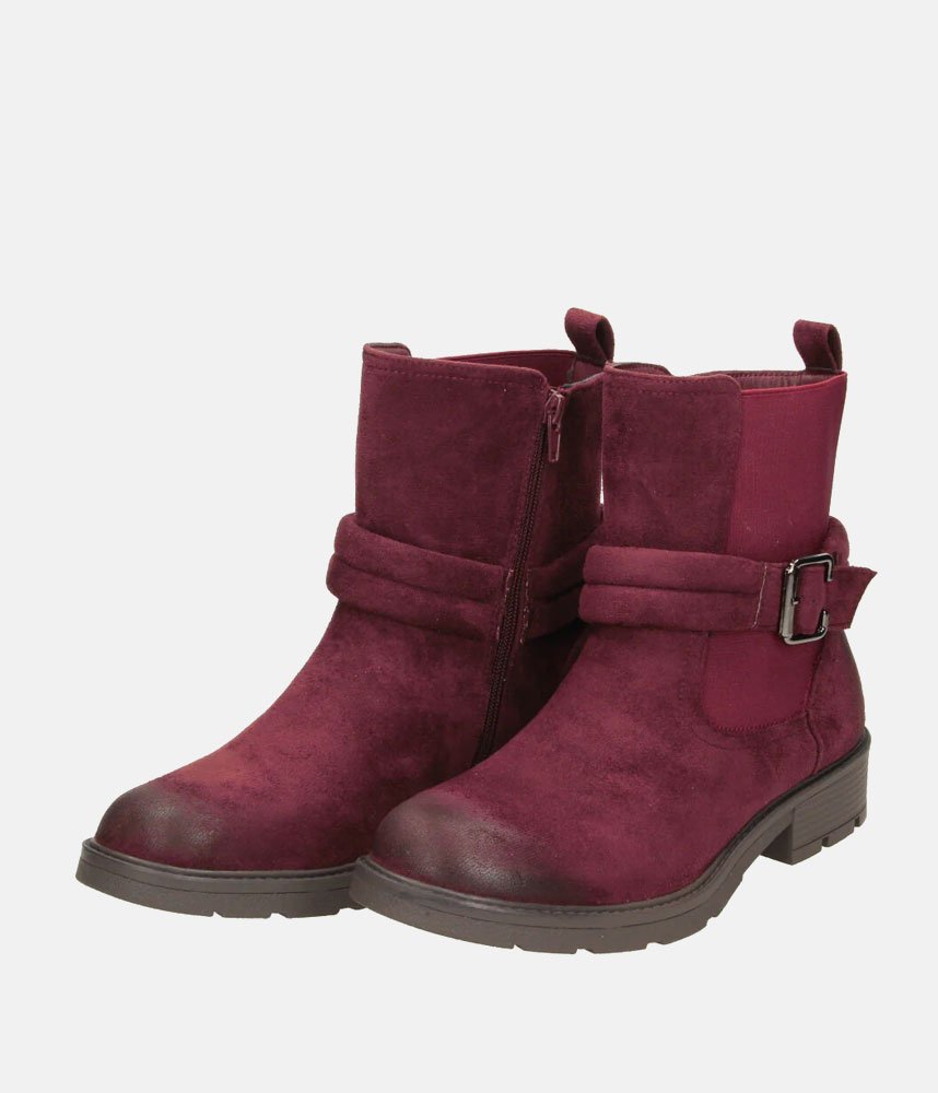 This is a burgundy ankle boot that blends elements of a classic biker boot with comfortable, everyday features. It has a rich, autumnal aesthetic that feels both rugged and polished. These Boho-Chic boots pair exceptionally well with skinny jeans, leggings, or even midi-length skirts for a balanced, textured look.