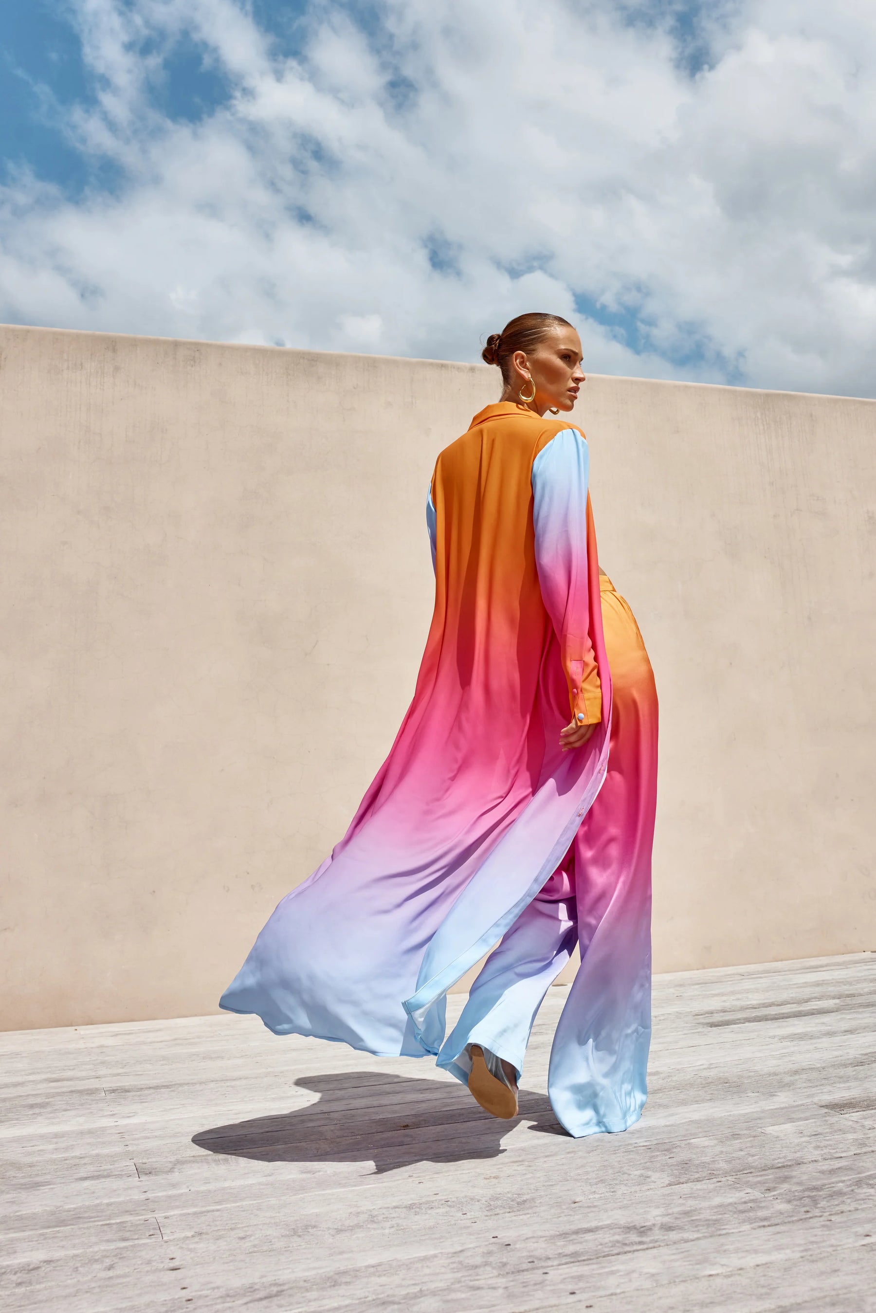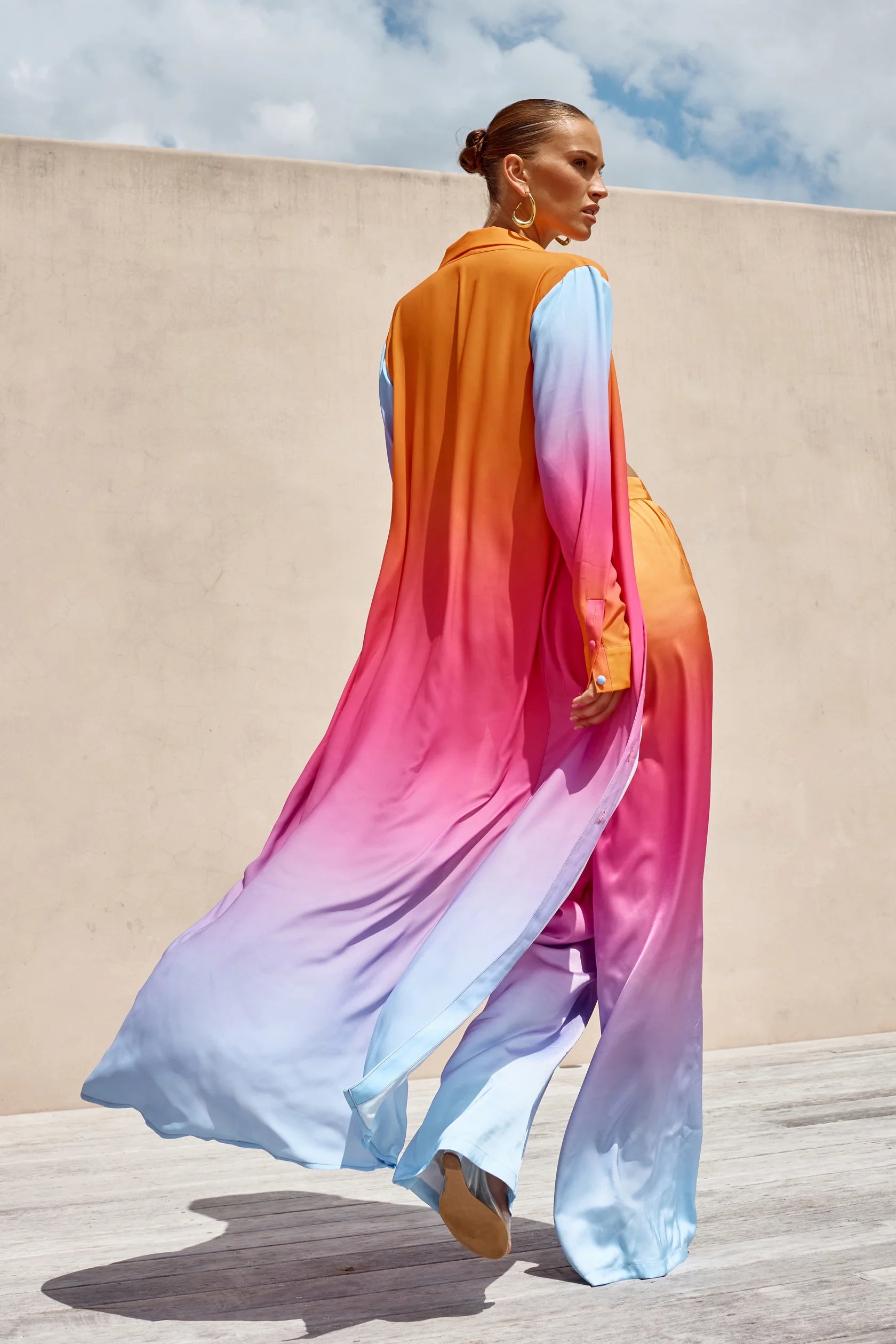 The standout of the season. This maxi duster coverup coat features an ombre transition for a sleek finish. With this standout piece, you’re sure to look your best all day long.