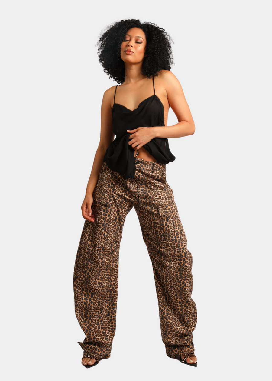 The Logan Pant was made for fashionistas and trendsetters. If you crave adventurous style that gets noticed, these leopard print cargo pants will become your new go-to. The eye-catching print and elongated silhouette will give your look a high-fashion edge.