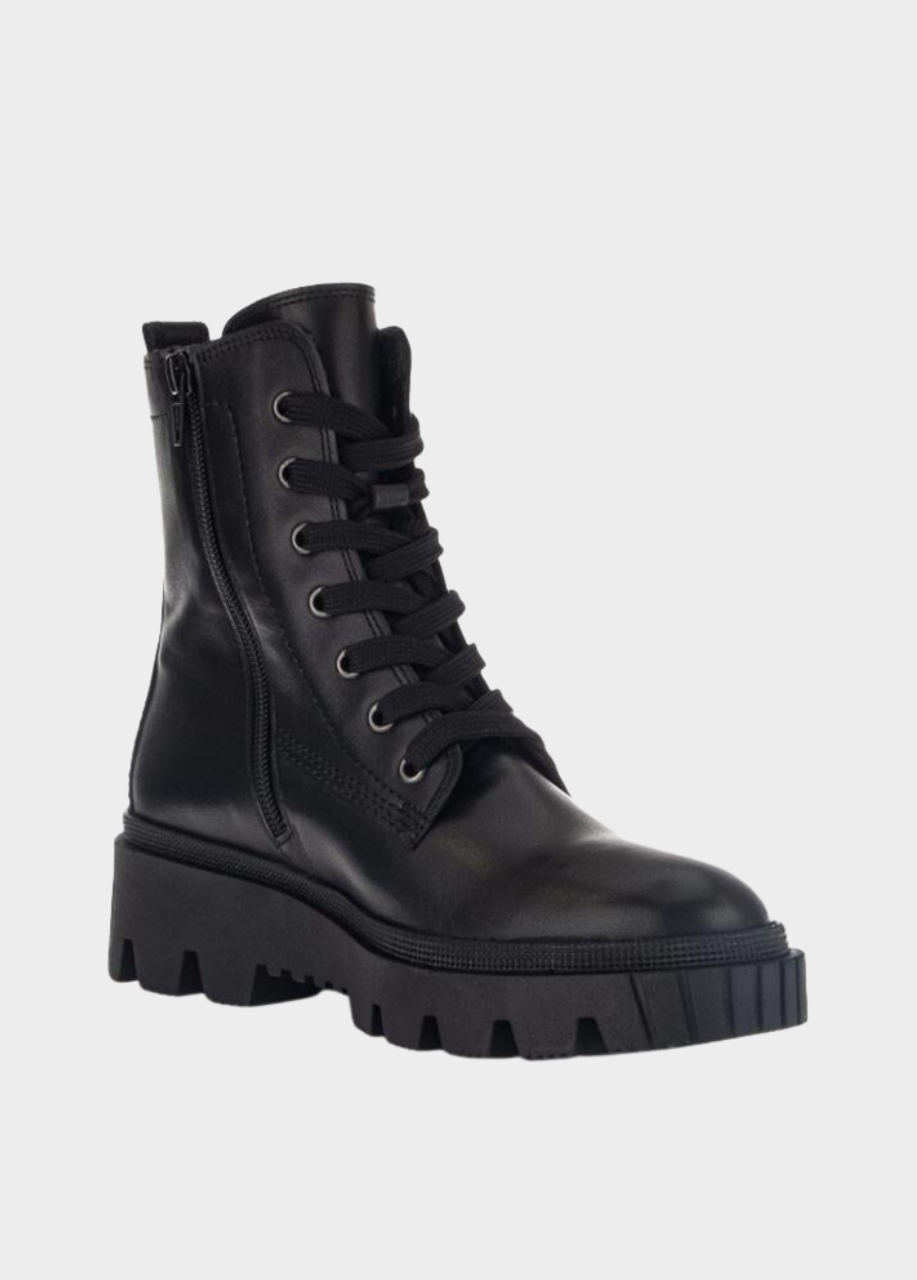This is a contemporary ankle boot from Gabor with a soft Leather upper. Micro fiber fills the linings of this Combat style boot and provide support and comfort. The durable man-made sole ensures maximum traction and the the side zip ensures easy on and off.