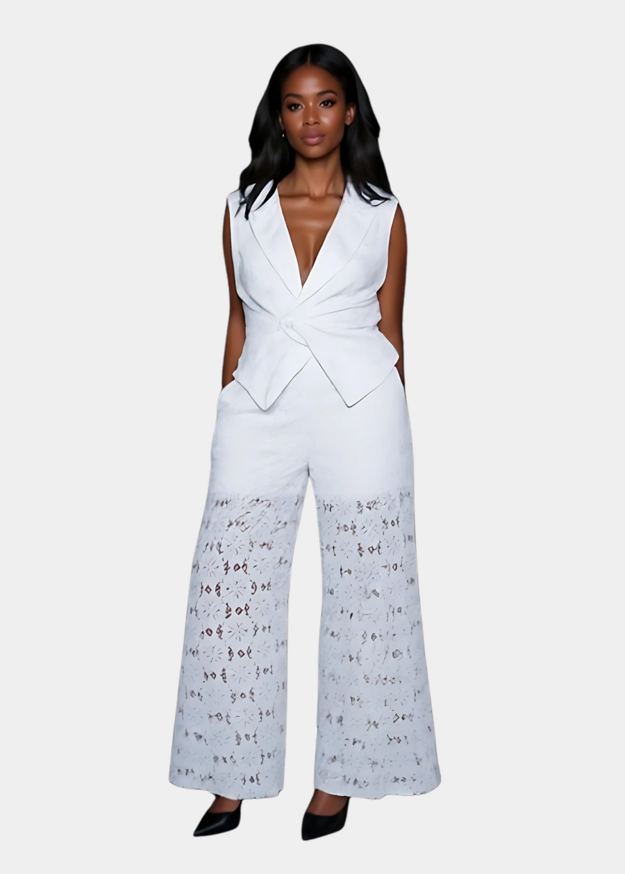 Our Laser Cut Floral White Two-Piece Set is the tall-girl dream that’s finally come to life. Designed with your height and curves in mind, this is the first time we’re offering a set with this kind of inseam, tailored tuxedo-flare vest, and flattering fit all in one.