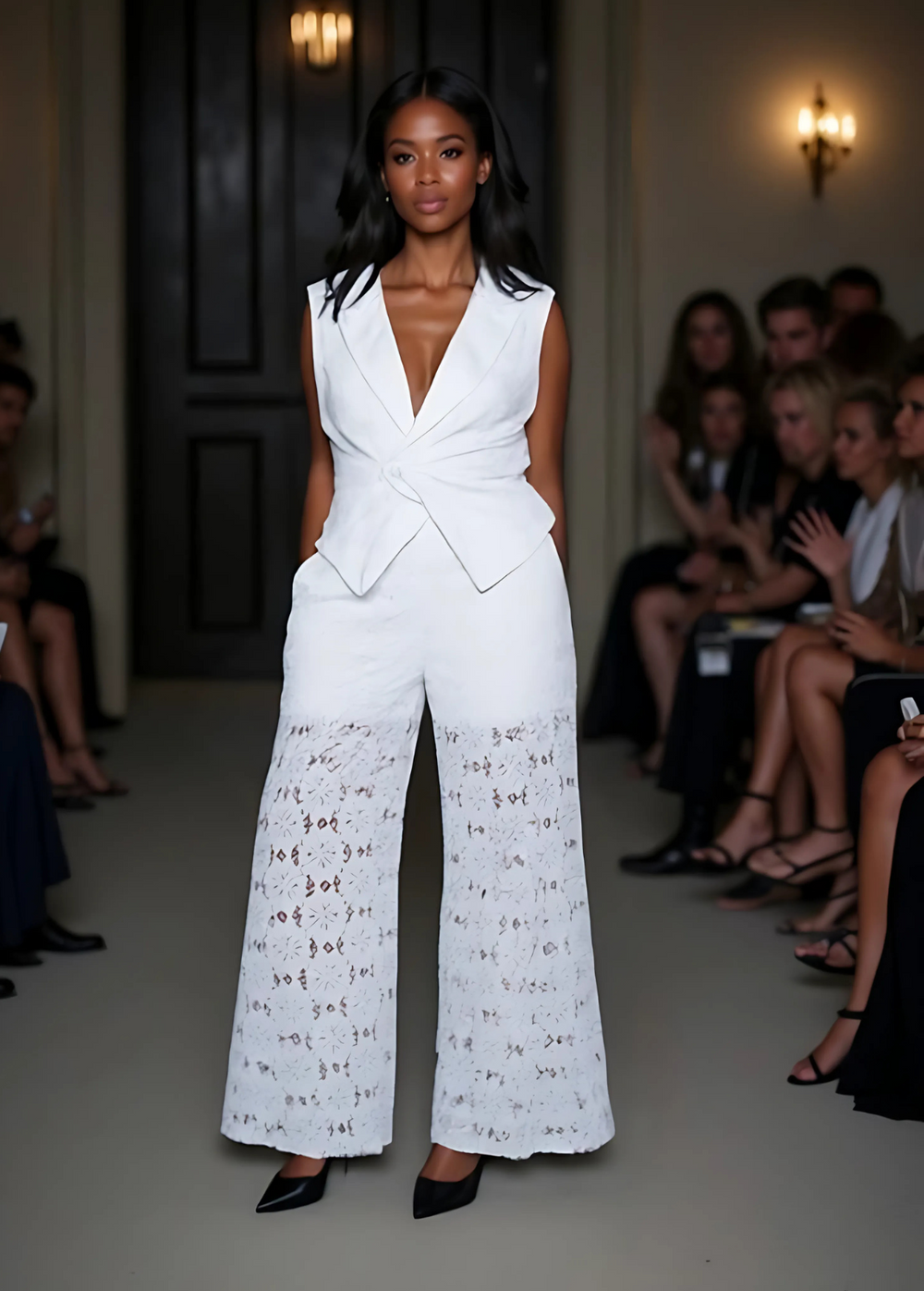 Vest Top: Longline with a structured, tuxedo-inspired flare – perfect for tall frames and elevated looks.