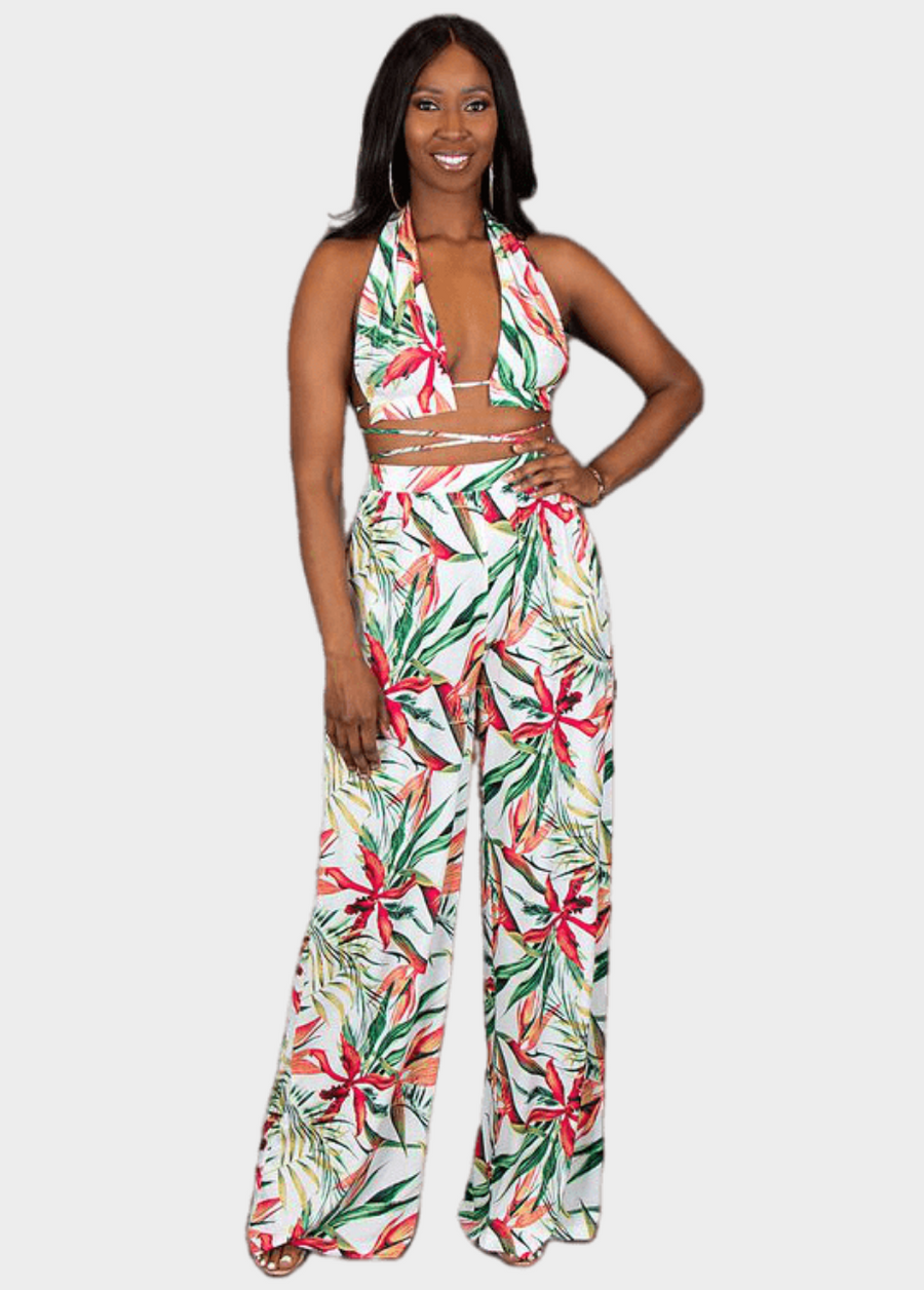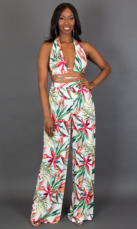 Put this outfit on the top of your 'must pack' list! The Aruba Set is everything you need to complete your vacation looks! Plus, there are so many mix-and-match possibilities! Pair the top with jeans, short, and even a bikini bottom! You can also pair the pants with so many different color shirts. Simply put, you will love this outfit!