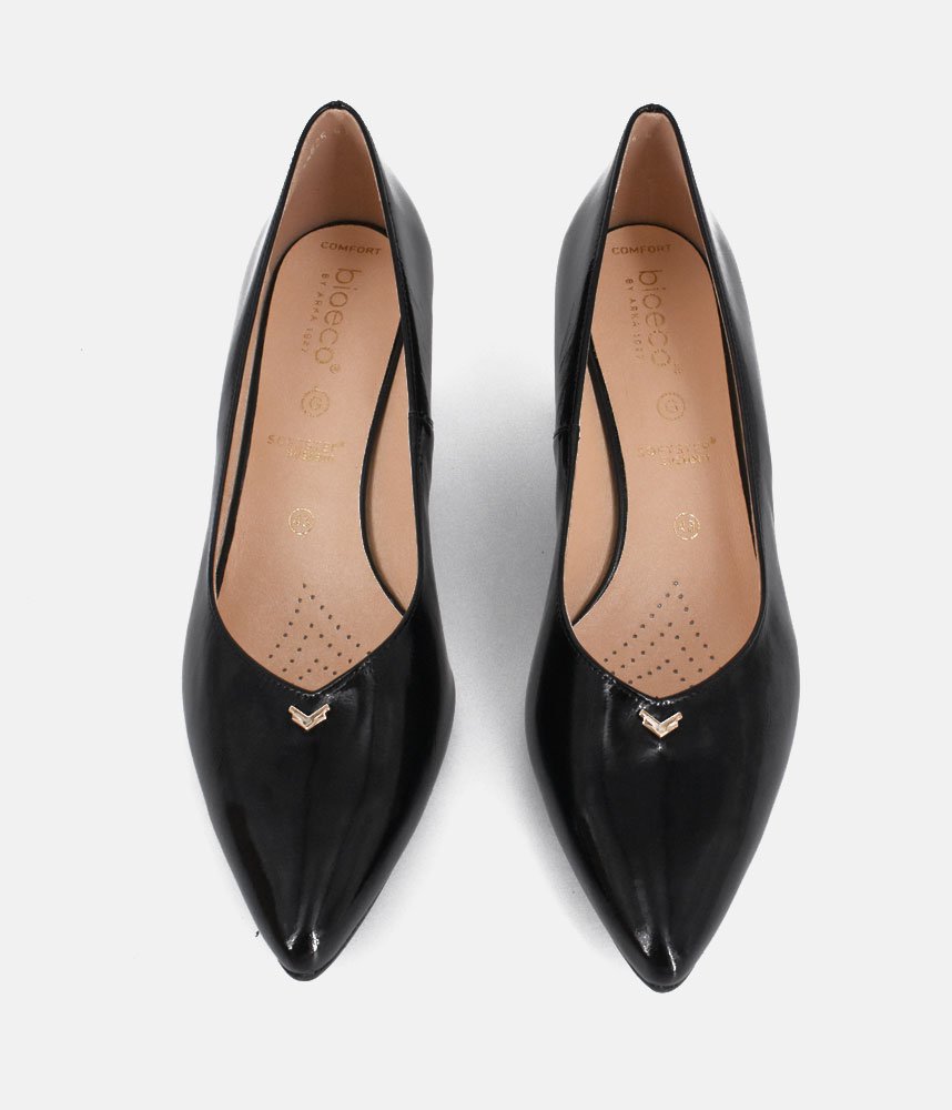 Experience the luxurious comfort and style of this Block Heel from Bioeco by Arka Patent. For an Effortlessly chic look step into these heels, featuring gold hardware and a sleek pointed toe for a sophisticated touch. Designed with a Soft Step System and featuring a cushioned leather insole, these heels provide exceptional support and comfort. Complete with a durable and flexible sole, these classic heels are perfect for all-day wear.