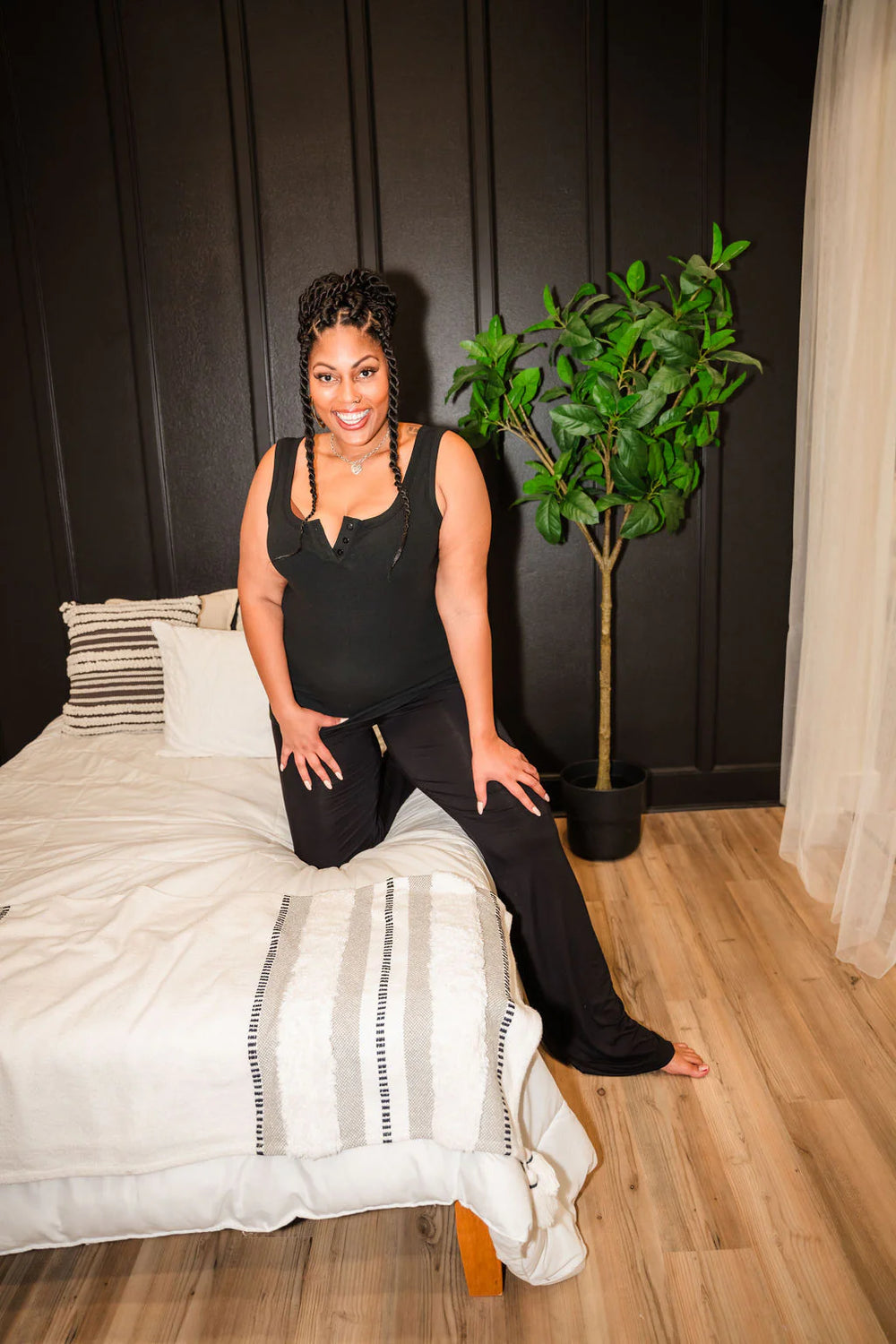 Lounge in effortless style with our Black Henley Tank & Black Modal PJ Pants Bundle—the perfect combination of comfort and versatility. The Black Henley Tank offers a flattering fit with classic button details, while the Black Modal PJ Pants provide unmatched softness with a breathable, stretchy feel. Whether you're unwinding at home or getting ready for bed, this cozy-chic set is a must-have. Bundle and save on your new favorite loungewear!