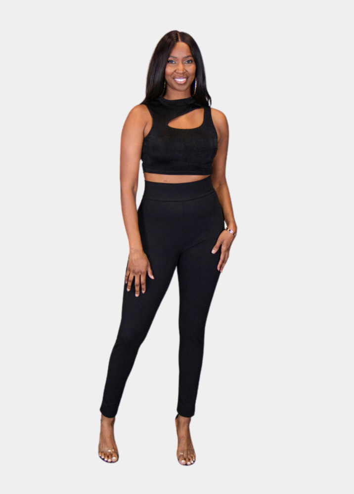 Pictured with our Chantel Set (top only) and black flair sandals.
