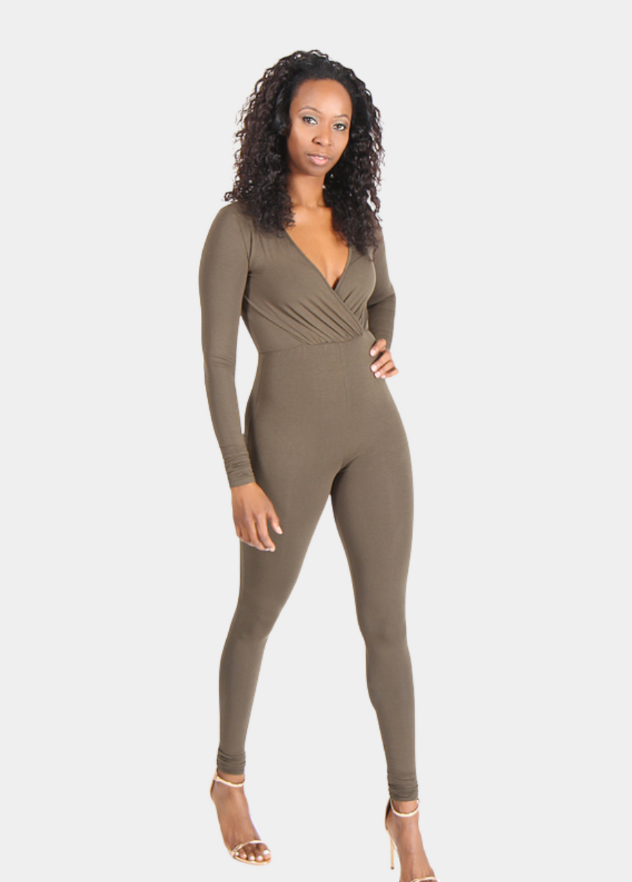 The Catalina jumpsuit is a fitted stretch jumpsuit with a wrap front. This style is perfect for a day party or night out on the town. Wear it alone or layer it with a duster or coat. This jumpsuit is perfect for transitioning weather and a must have for the tall woman who likes to turn on the sexy from time to time. No closure.