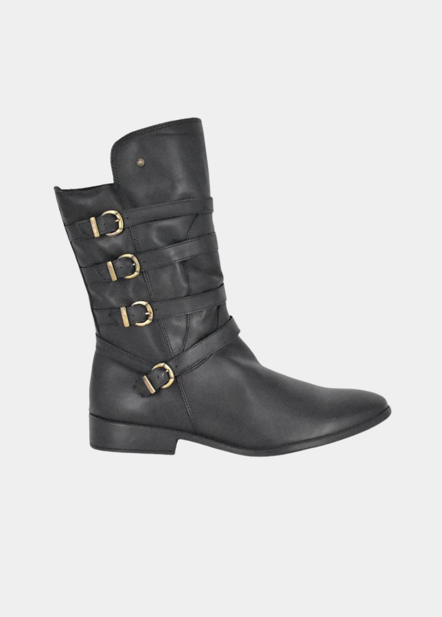A Premium Leather Midi Boot with decorative buckle detailing on the upper. This styles fuses function with style and is perfect for the cooler days.