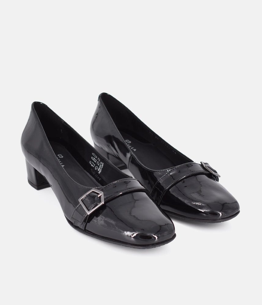 Step into elegance with these Low Block heel shoes. Made from premium patent and featuring a timeless design, they add the perfect touch of sophistication to any outfit. Featuring a simple and classy silhouette in Classic Black. These heels have superb cushioning on the insole and will be a great choice for the office or ideal if you’re on your feet all day.