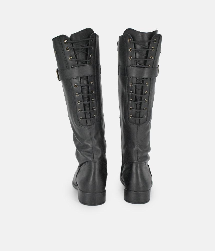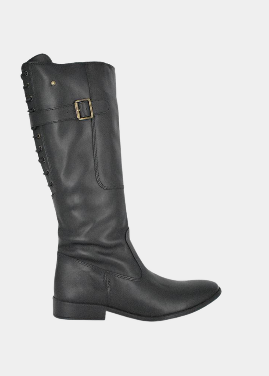 Give any look that extra something special with these long leather boots featuring decorative corset style lacing and buckle detail. A great choice for your wardrobe this season.