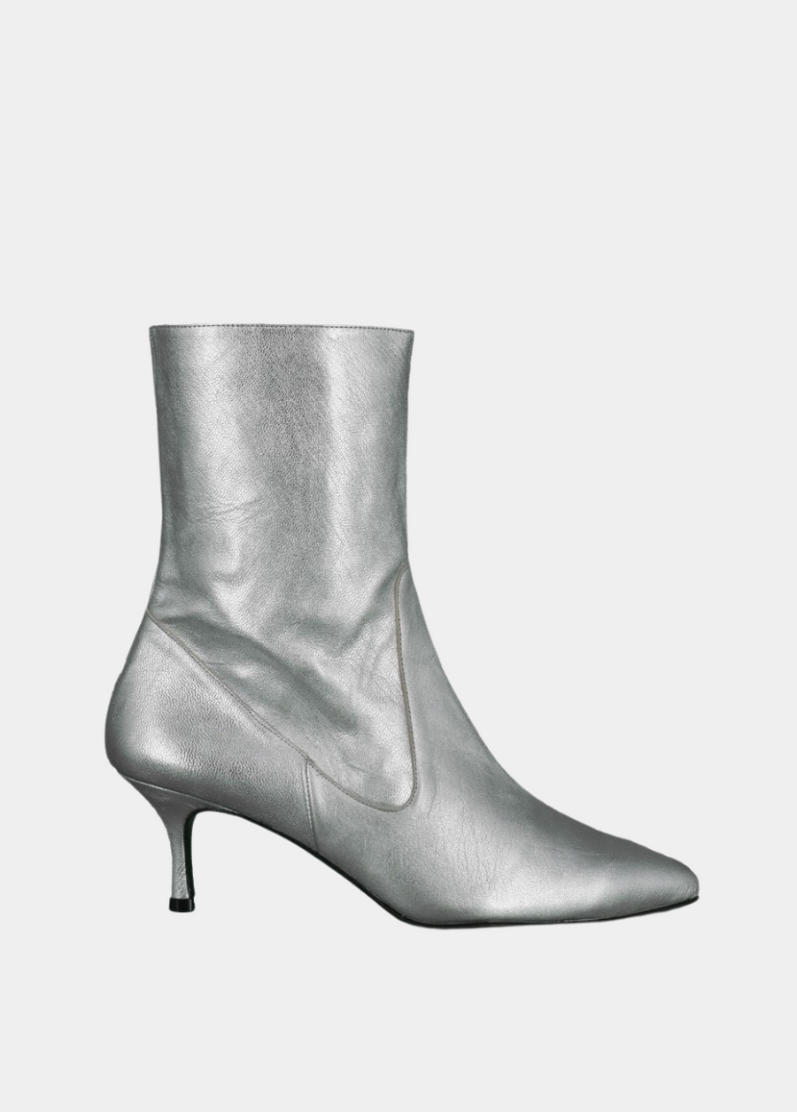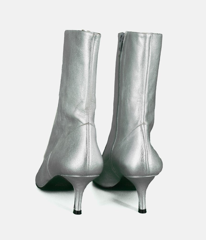 Dansi Fashionable Metallic Silver Stiletto Heel Ankle Boots