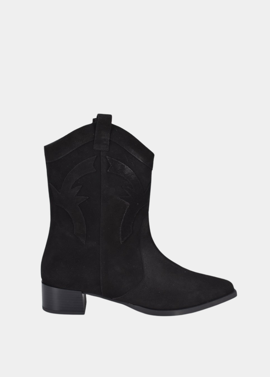 Treat your wardrobe to these essential ankle boots. A perfect choice for this season for a versatile and will look good with anything, whether you’re wearing them with jeans or a dress. Crafted from soft suede, these boots are designed with a classic almond toe and rest on a stacked heel and feature cut out Western-style panelling.