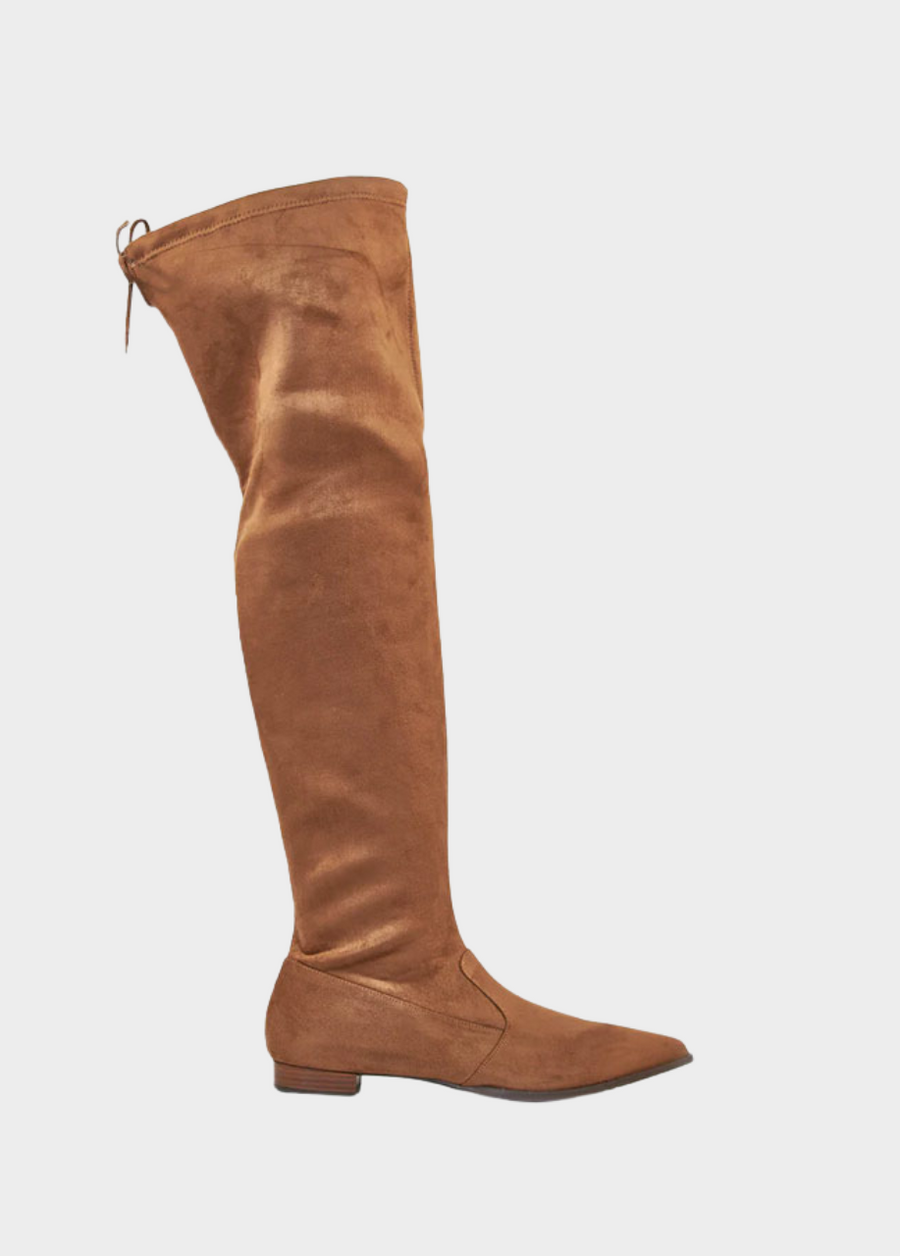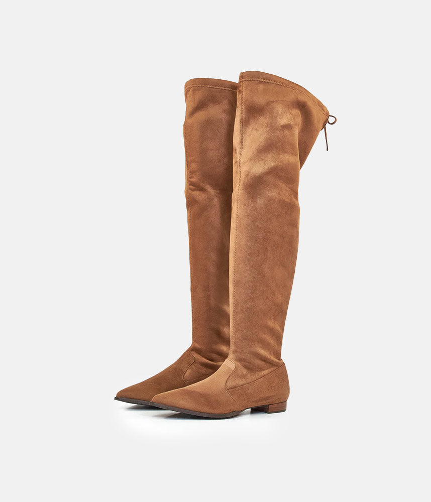 Create a striking silhouette in these Premium Suede over-the-knee boots. Pull-on style, with a soft pointed toe, and tie closure at back. These boots are handmade for Cinderella Shoes in Spain. Warm and chic, these make for a wardrobe staple.