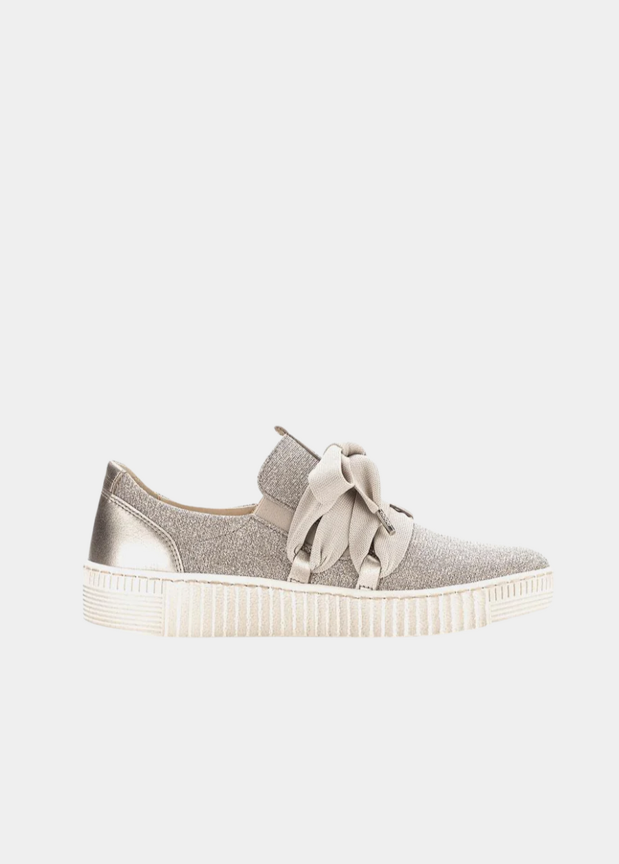 A Stylish Rose Gold Slip on Style from Gabor with a chunky outsole featuring stylized grooving for a textured finish. A fantastic versatile style to have in your wardrobe that can be worn with a wide variety of looks and outfits. The trainers are lined with smooth leather and textile that cushions feet for a comfortable fit.