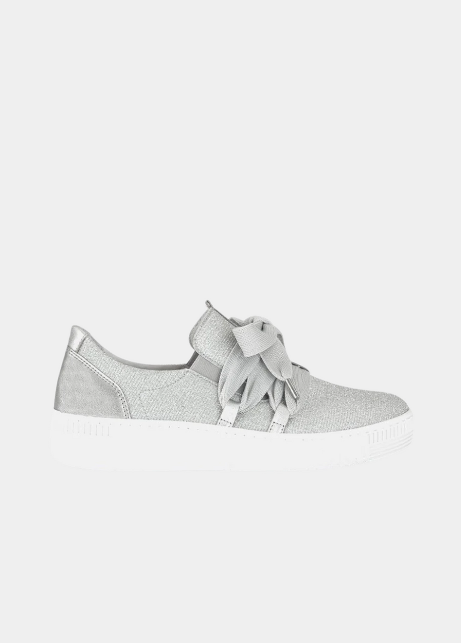 A Stylish Silver Slip on Style from Gabor with a chunky outsole featuring stylized grooving for a textured finish. A fantastic versatile style to have in your wardrobe that can be worn with a wide variety of looks and outfits. The trainers are lined with smooth leather and textile that cushions feet for a comfortable fit.