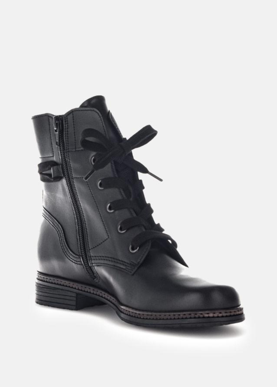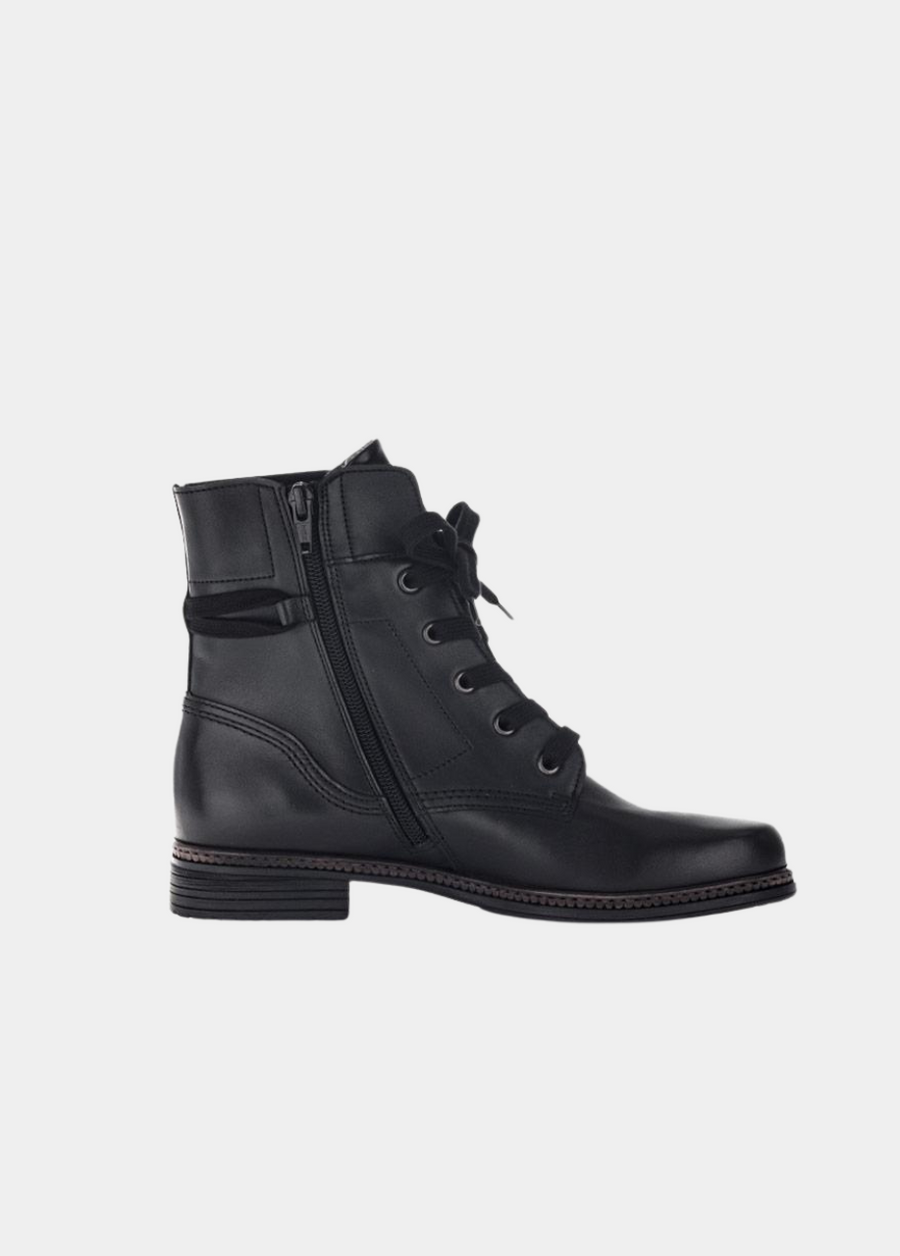 This style from Gabor is made from a high-quality smooth leather. Contoured outsole, side zip for easy on and off and the stylish lacing. A must-have for any season!