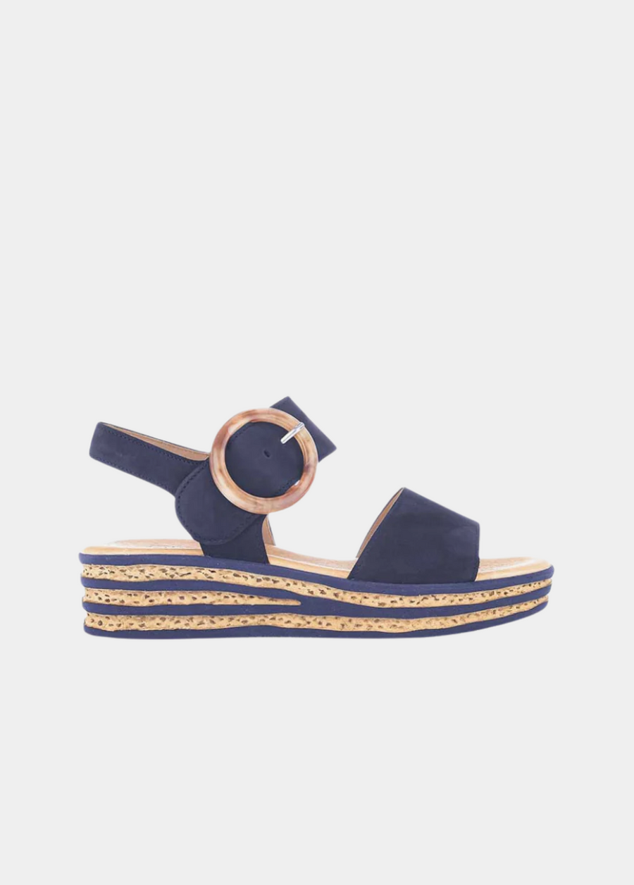 This sandal from Gabor is a beautiful combination of style and comfort that can be worn for a wide variety of occasions. These comfortable wedge sandals have a patterned wedge sole, a velcro strap for easy on and off and a 6.5 cm wedge heel.