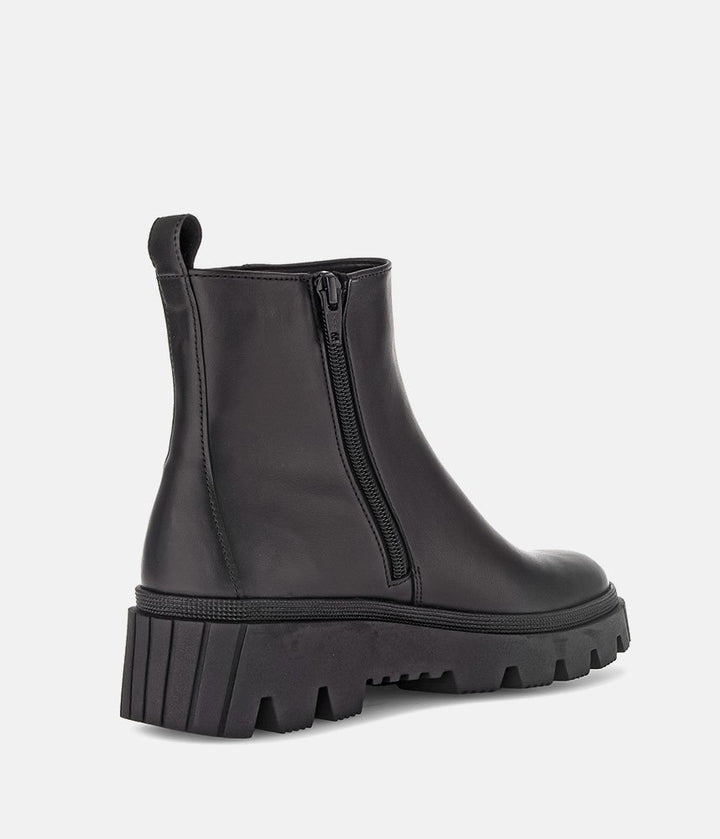 This is a contemporary ankle boot from Gabor with a soft Leather upper. Micro fibre fills the linings of this Combat style boot and provide support and comfort. The durable man-made sole ensures maximum traction and the the side zip ensures easy on and off.