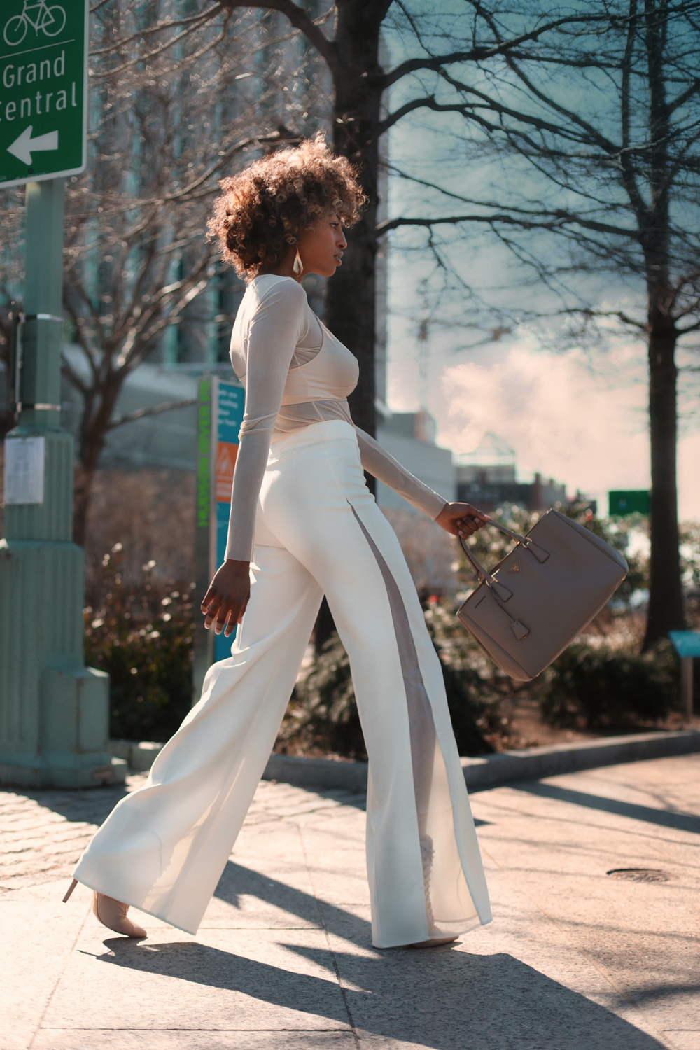 The Jennifer Pant is a true showstopper. Featuring a sheer side panel, high waist, and a zip fly, this pant is sure to turn heads wherever you go.