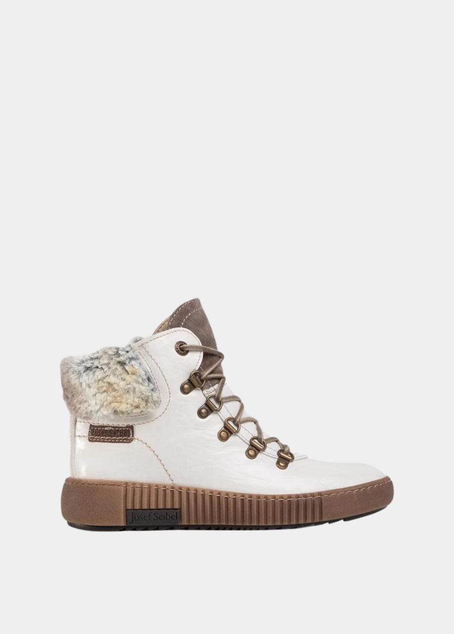 A Distinctive ankle boot offering both style and comfort from JOSEF SEIBEL. This style features an outer textural knit collar, a warm fleece lining and unique eyelets with decorative laces and a zip fastening to ensure a supportive fit. Sitting atop a chunky sole ensuring these boots are both practical and stylish.
