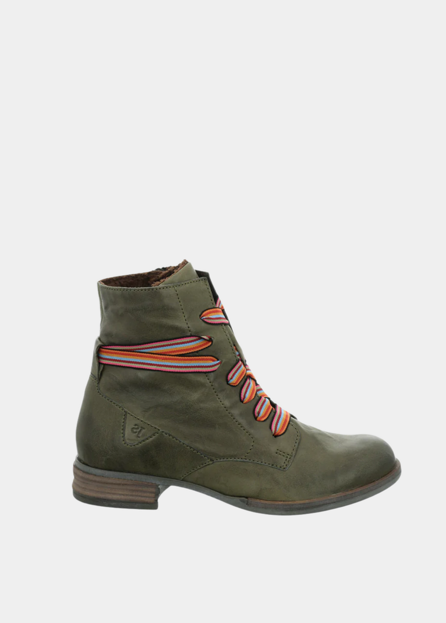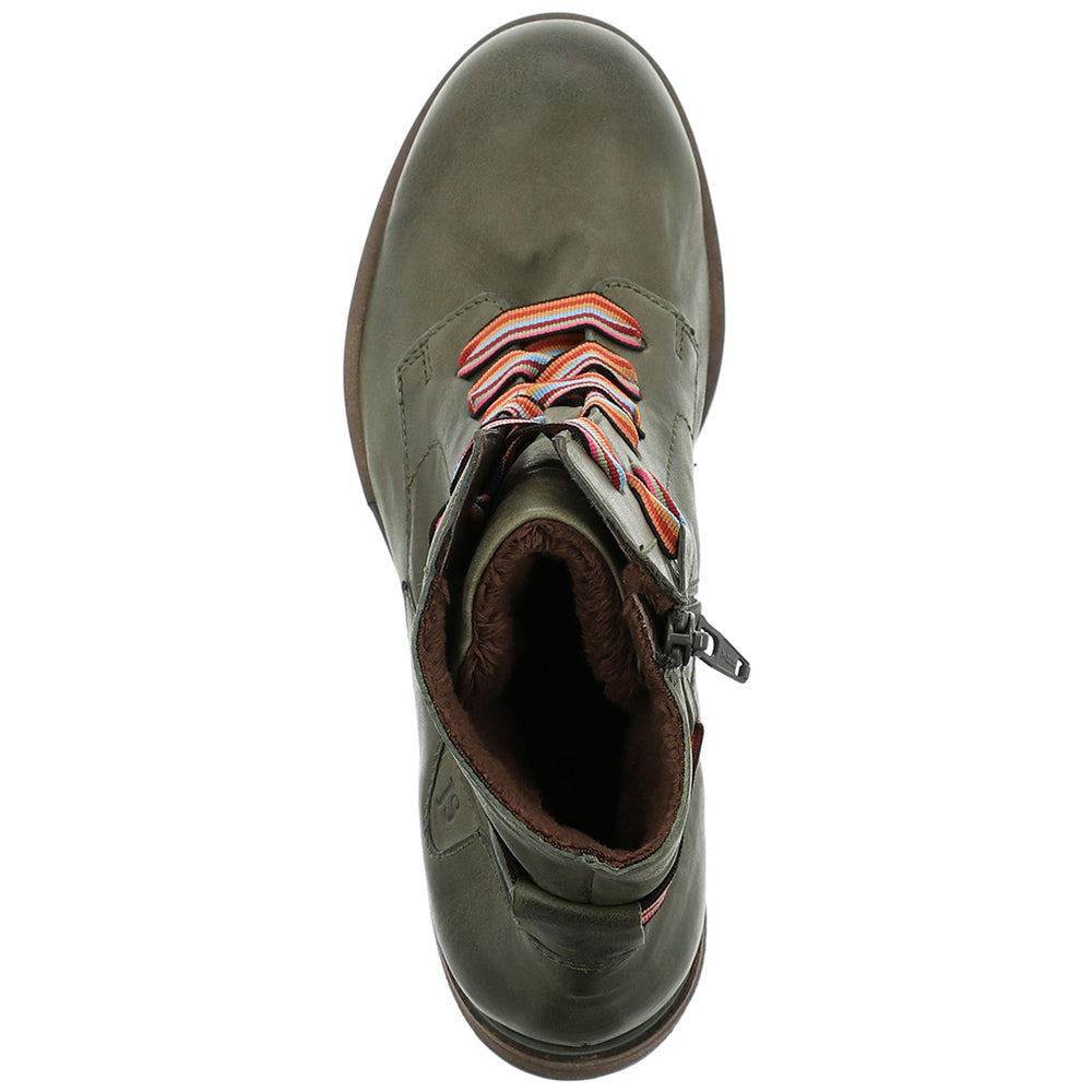 A Premium on trend leather boot from Josef Seibel with pretty colorful laces that adds a bit of fun to your wardrobe this season. This style has a warm, soft plush lining for added comfort this winter, with a side zip and laces for easy pull-on. Pairs perfectly with your favorite jeans or leggings for the ultimate on-trend look.