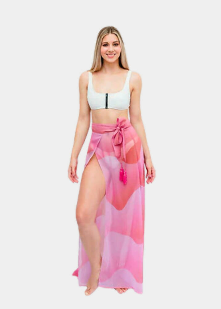 Effortless and chic, this sheer, floor-length wrap skirt is a perfect new addition to your poolside style. Made from Polyester Silk Chiffon, this wrap skirt can take you from the beach to the boardwalk! Wrapping at the waist, the skirt ties A-symmetrically with tassels at the end of the ties to give you that Liv Tall leg slit you know and love from the Liv Wrap. Wear it over your favorite swimsuit or try it over shorts and a crop top for an unexpected summer look!