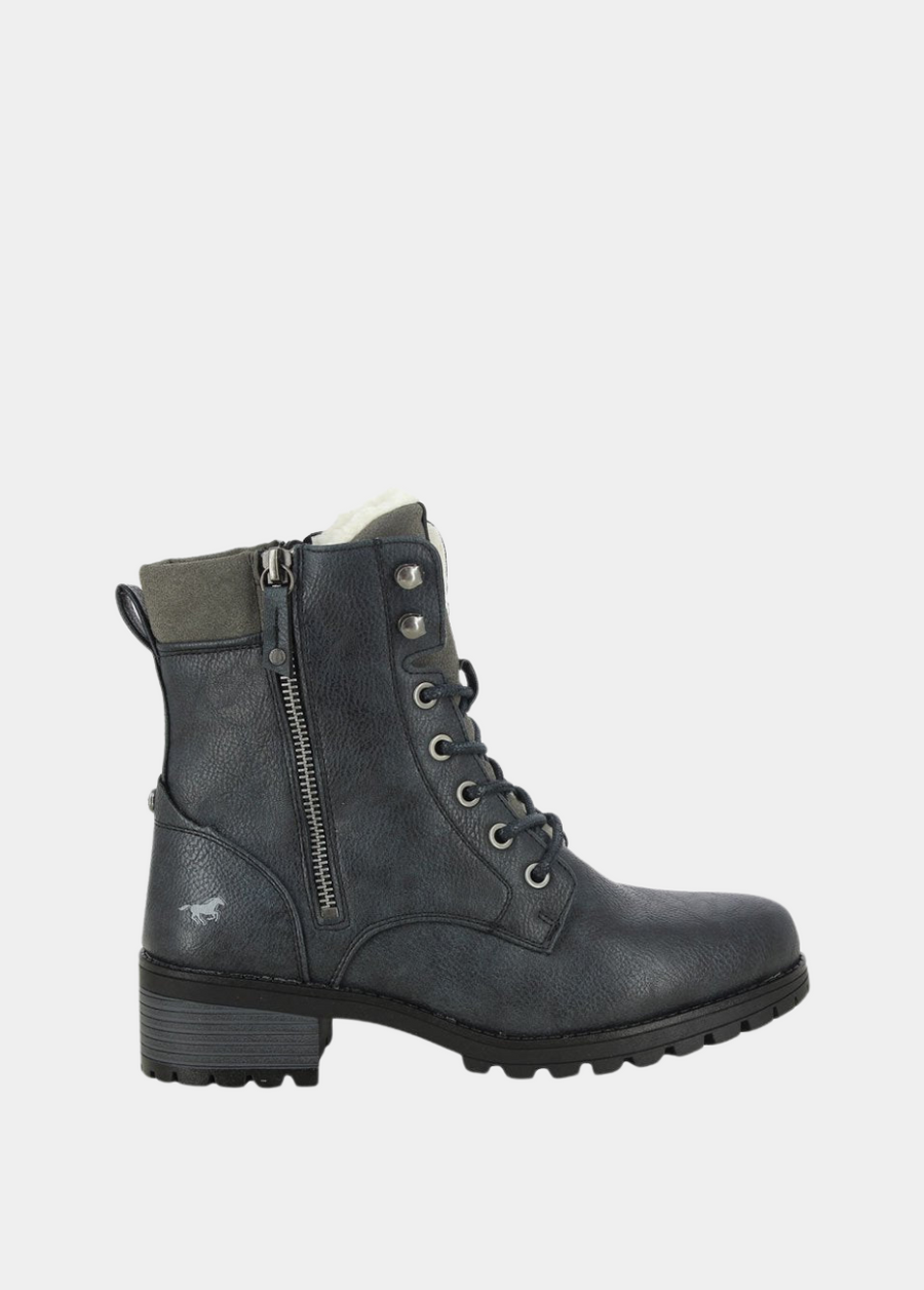 These Stylish boots by Mustang are a great fashionable choice for your wardrobe.  The soft wool interior is super cosy and the side zipper is practical for easy on and off. The additional decorative side zipper really give the boot a fab look and the soft ankle cuff ensures a comfortable fit. A trendy companion that never goes out of style and will work just as well with dresses as they do with jeans.