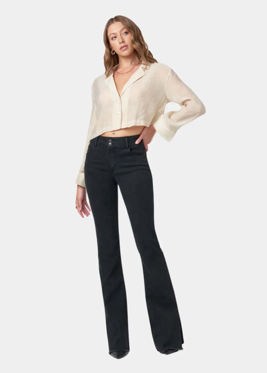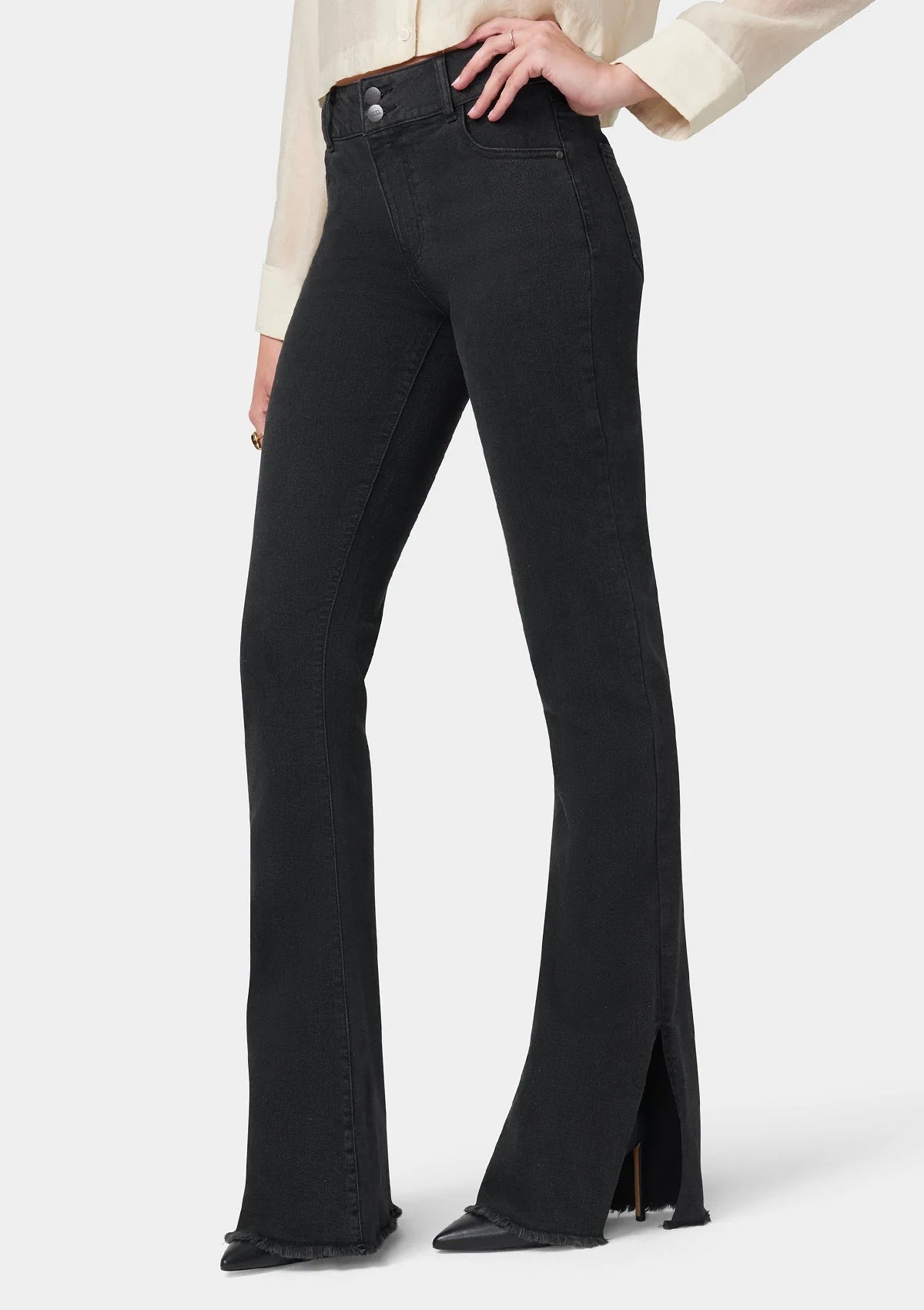 Our Olivia Flare Jeans are a chic embodiment of classic style mixed with a modern twist, boasting a classic 5-pocket design and eye-catching side slits on both legs. The flare silhouette adds a touch of drama, perfect for a polished look with pumps or casual flair with ankle boots.