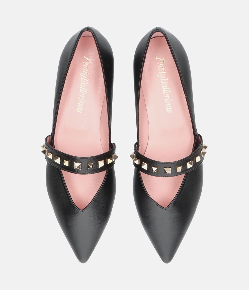 These V-Cut leather Ballerinas made in Black Leather are so stylish, with a flexible undersole and cushioned insole making them super comfortable to wear. This style is finished to perfection with a gorgeous studded strap over the vamp.