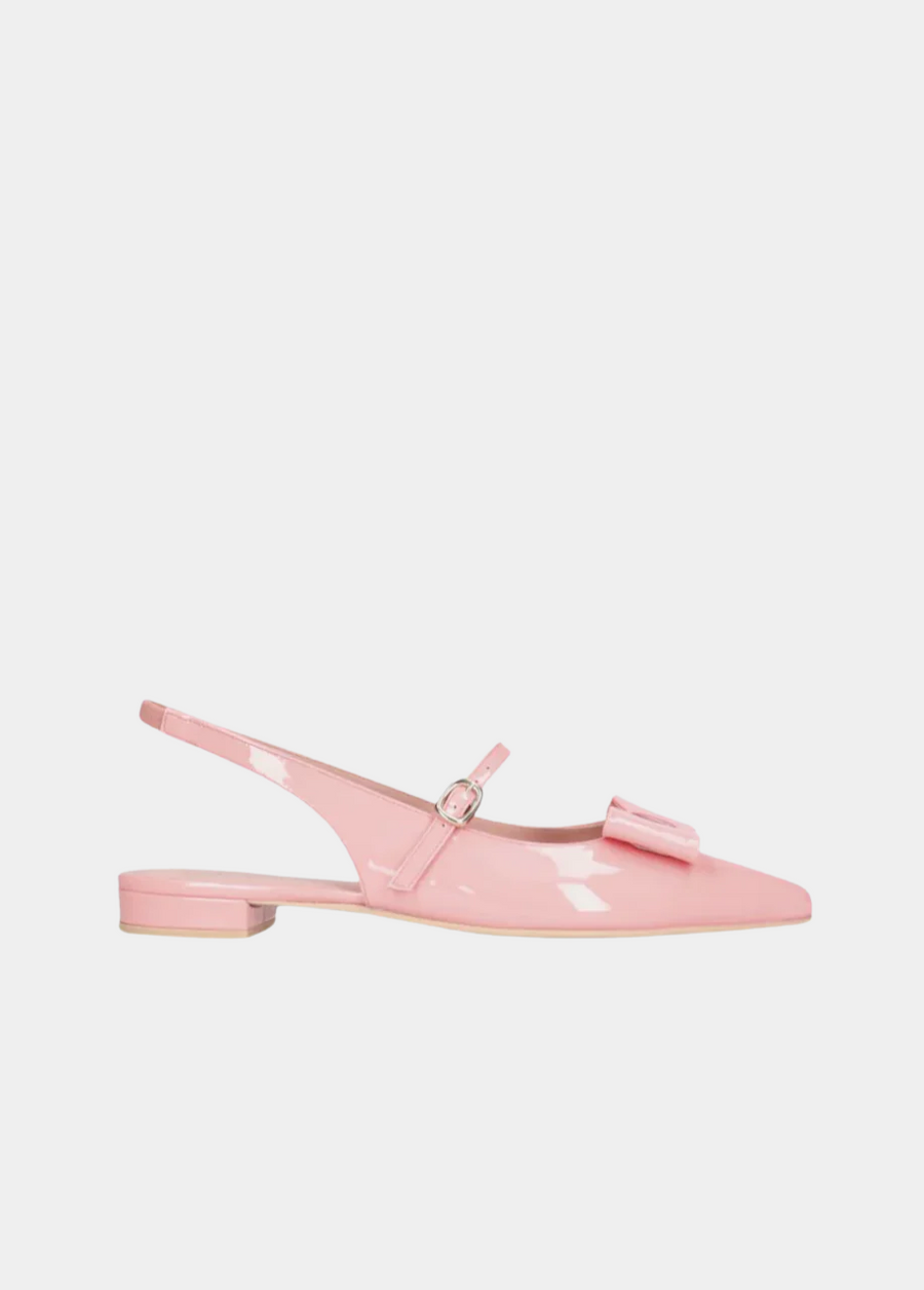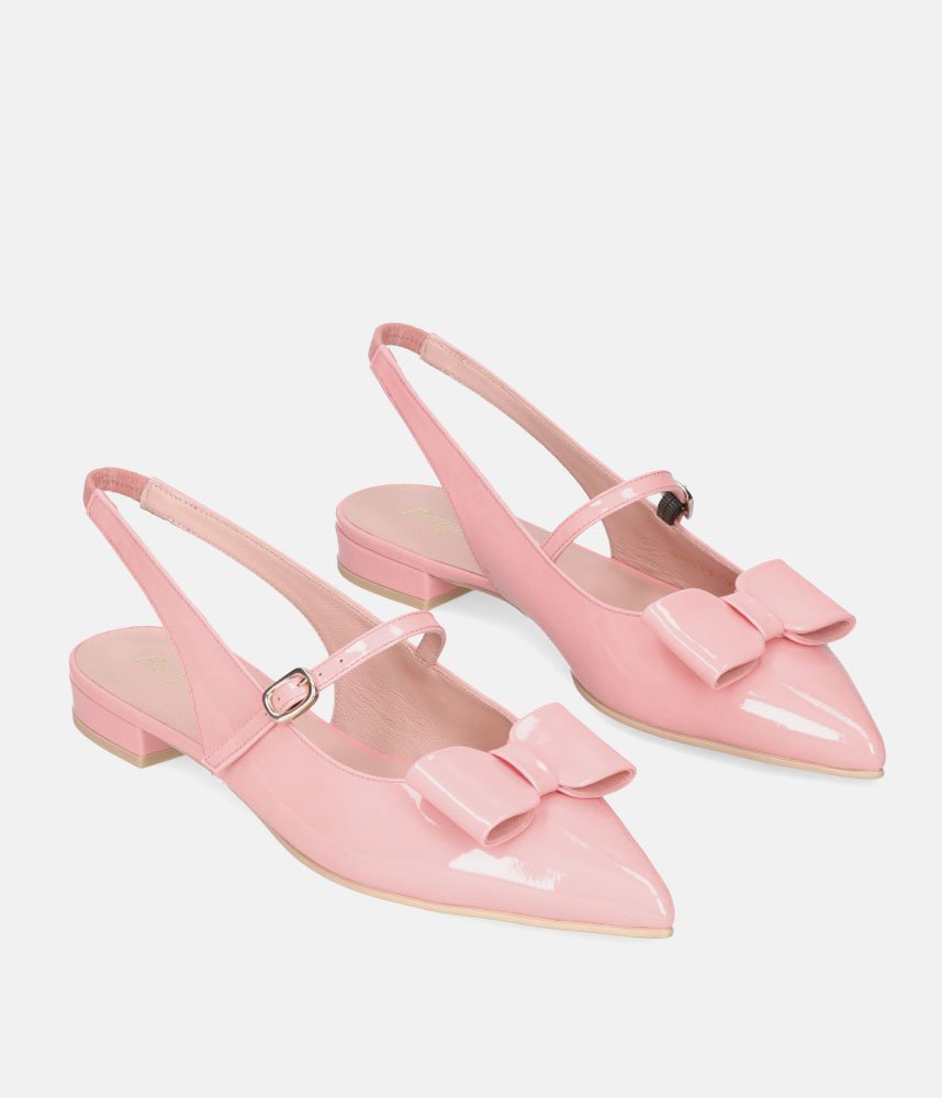 Beautifully crafted in Spain by Pretty Ballerinas these are some seriously fancy flats. Made in a pretty pink glossy patent leather, featuring a pointed toe, chic bow detail, and slingback strap. This is a Cute Playful style and will be perfect for Special Occasions.