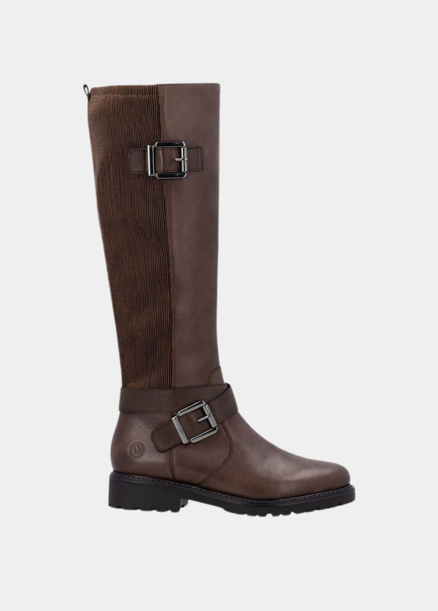 This is a Beautiful Long Leather Boot from Remonte with a full-length side zipper and Decorative buckles on the Upper. The elasticated side panels allow adjustment in the width to suit your calf creating the perfect fit. In addition, the cozy lining lends softness and warmth and the removable cushioned footbed absorbs shock and stress.