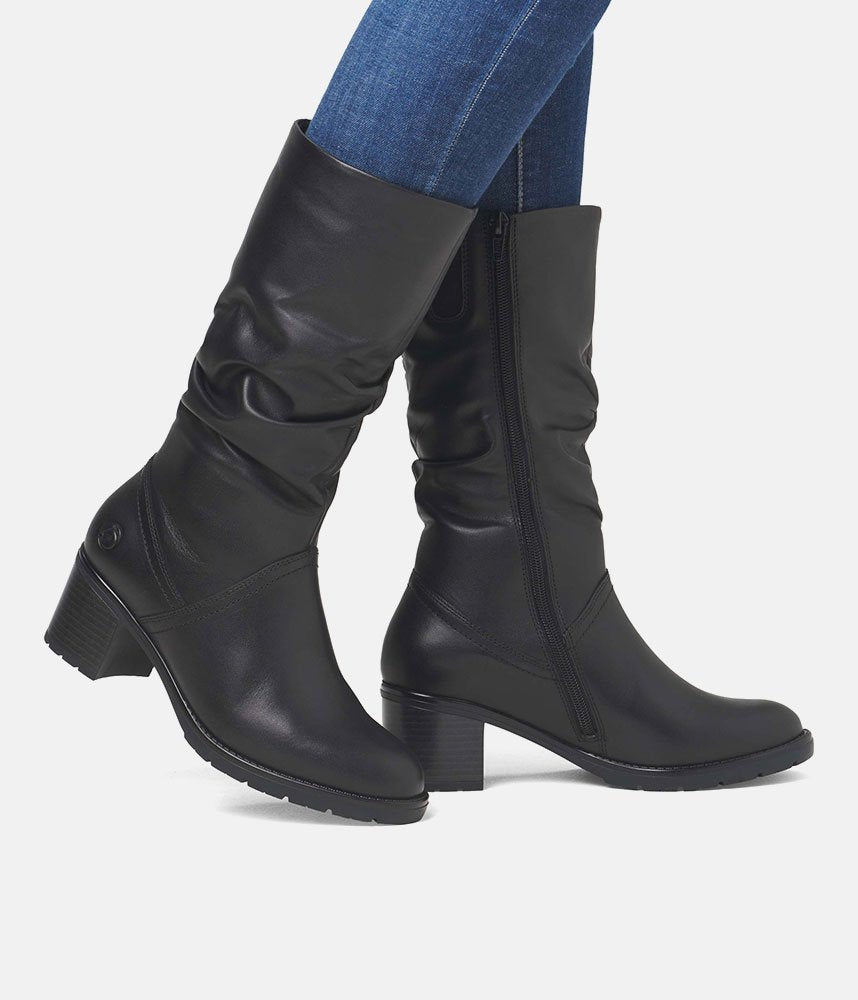 This is a Fabulous new style ankle boot from Remonte in classic Brown leather. Both stylish and versatile, heeled ankle boots are the perfect partner for any of your autumn or winter looks! This Classic Black boot has an almond shaped toe, decorative buckle and rests on a block heel. Perfect for day to evening wear.